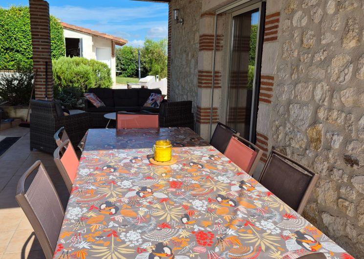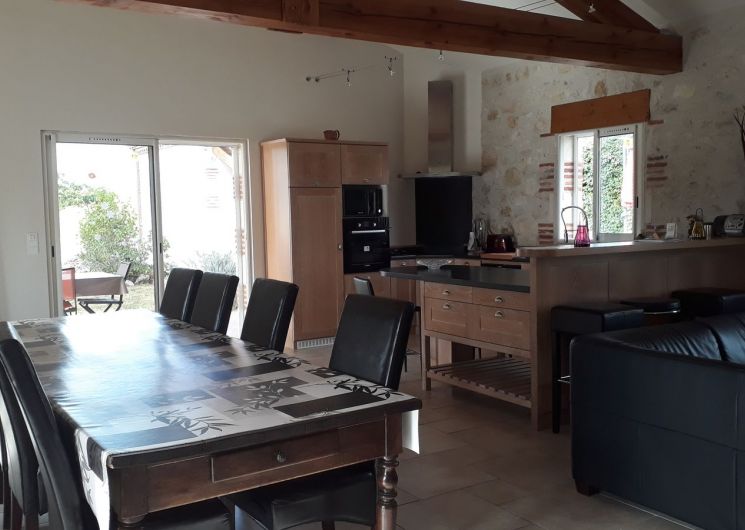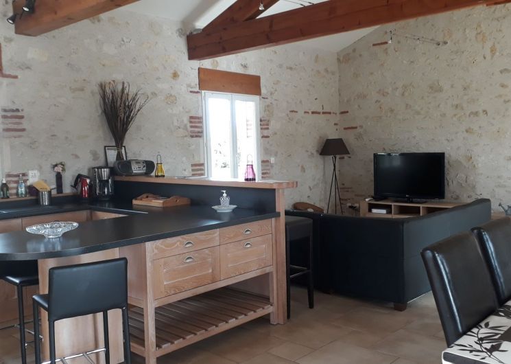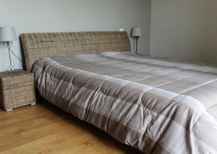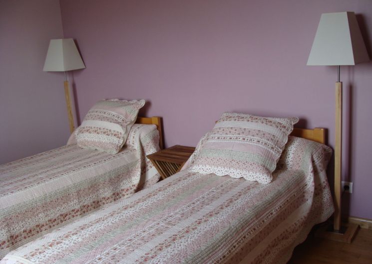 Gite indépendant, au rez-de-chaussée : cuisine intégrée (MO, LV), salon (canapé, TV, lecteur DVD, radio CD), wc, salle d’eau, 1 ch (1×160), 1 ch (1×140), cellier (LL). A l’étage : salon (fauteuil, TV), salle de bains, wc, 1 ch (1×160) avec balcon, 1 ch (2×90). Terrain privé non clos (2000 m2). Terrasse couverte (20 m2). Barbecue. Equipement bébé sur dde (chaise haute, lit bébé). Chauffage au sol élec. Le prix comprend : la fourniture des draps, linge de maison, l’accès internet. En option : linge de toilette, ménage. Nouveauté 2025 : chambres climatisées.