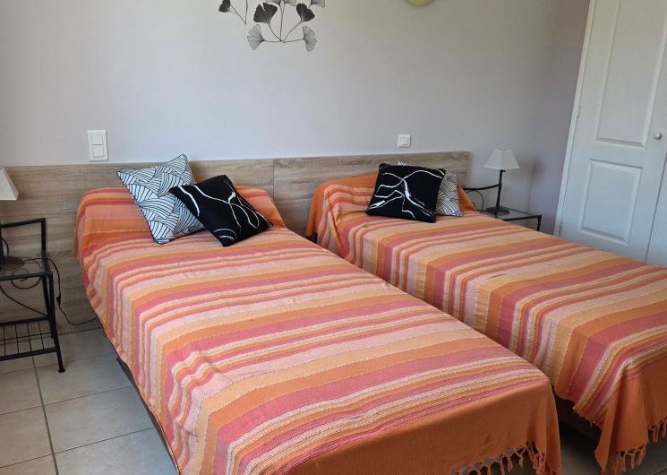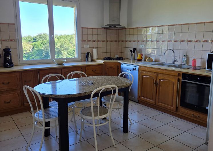 Arrivée sur un parking réservé au gîte. Passez devant la terrasse bien équipée, salon de jardin avec grand parasol, barbecue. Terrain non clos au bord d’une petite route à faible circulation. Un escalier vous conduit au 1er étage où se trouve le logement : une grande pièce à vivre comprenant la salle à manger (table chaises mobilier de rangement), un salon (canapé d’angle, TV, lecteur DVD), une cuisine (éléments intégrés avec lave-vaisselle, four, four micro-ondes, réfrigérateur congélateur, table et chaises). Du couloir vous accédez à chambres : 2 chambres avec 1 lit 140 chacune, et 1 chambre avec 2 lits 0,90, placards de rangement dans chacune des chambres. Un cellier rangement, 1 wc indépendant. 1 salle d’eau avec douche et 2 vasques; lave linge. Internet par wifi dans tout le logement. La piscine est clôturée avec bains de soleil.(9,5x4x1,45).