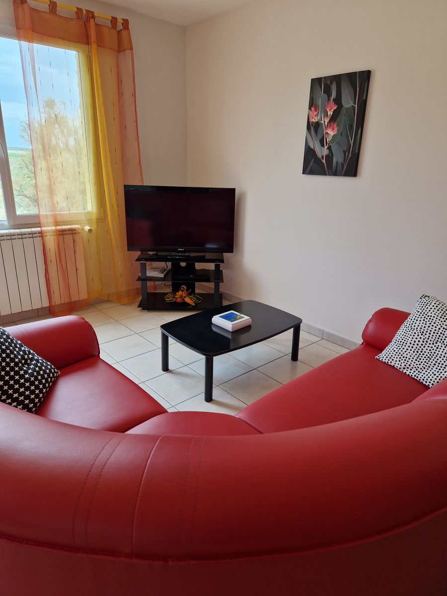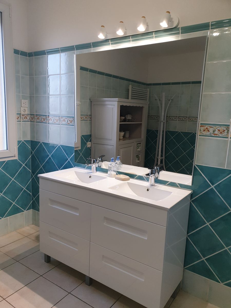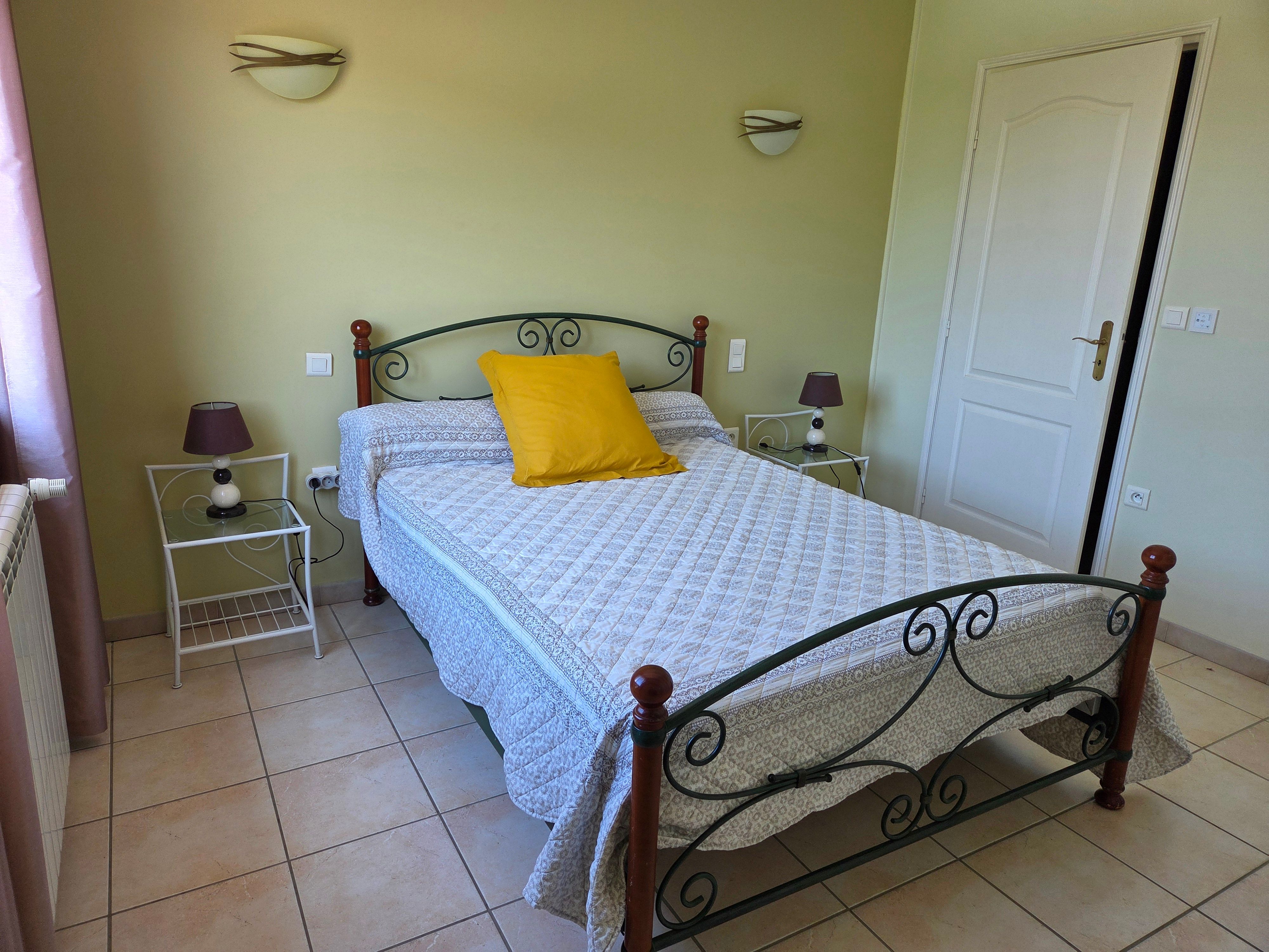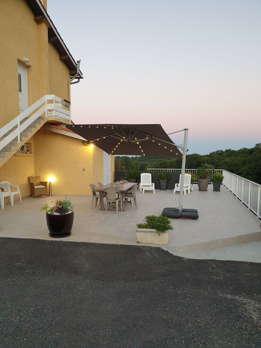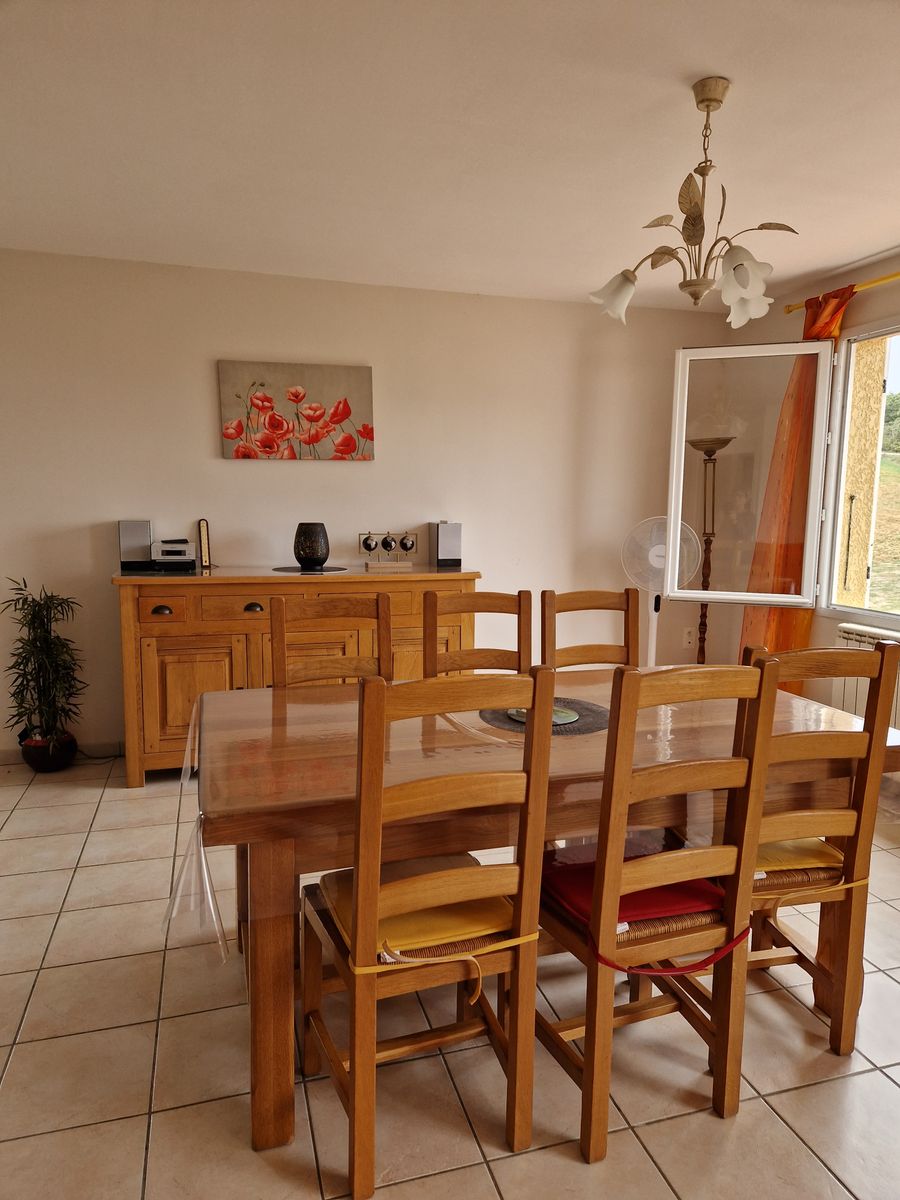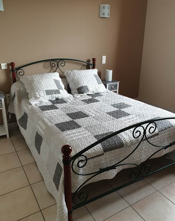 Arrivée sur un parking réservé au gîte. Passez devant la terrasse bien équipée, salon de jardin avec grand parasol, barbecue. Terrain non clos au bord d’une petite route à faible circulation. Un escalier vous conduit au 1er étage où se trouve le logement : une grande pièce à vivre comprenant la salle à manger (table chaises mobilier de rangement), un salon (canapé d’angle, TV, lecteur DVD), une cuisine (éléments intégrés avec lave-vaisselle, four, four micro-ondes, réfrigérateur congélateur, table et chaises). Du couloir vous accédez à chambres : 2 chambres avec 1 lit 140 chacune, et 1 chambre avec 2 lits 0,90, placards de rangement dans chacune des chambres. Un cellier rangement, 1 wc indépendant. 1 salle d’eau avec douche et 2 vasques; lave linge. Internet par wifi dans tout le logement. La piscine est clôturée avec bains de soleil.(9,5x4x1,45).