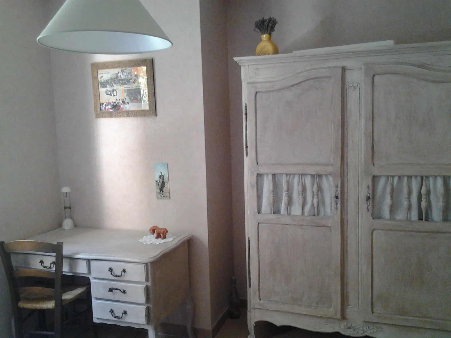 Chambre 1 : un lit 160 cm, chambre 2 deux lits en 80 cm , chambre 3 : un lit 140 cm. Toutes les chambres disposent de placards.
