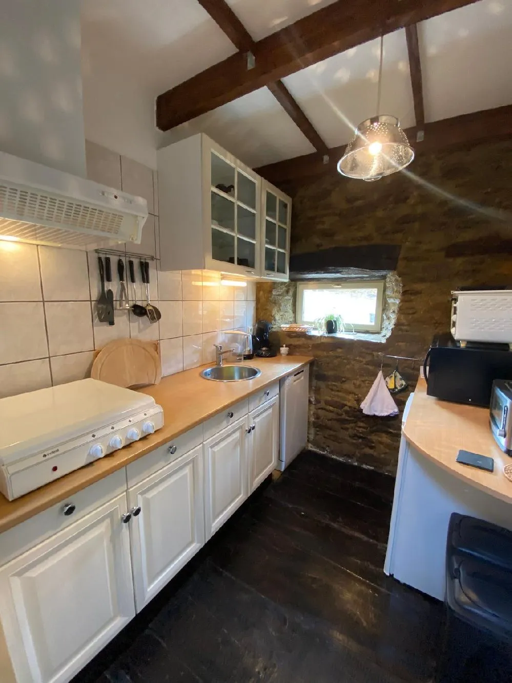 Le prix comprend : l’électricité, draps et linge de toilette fournis/lits faits à l’arrivée. Attention, logement peu adapté pour jeunes enfants (fin de terrain pentu).