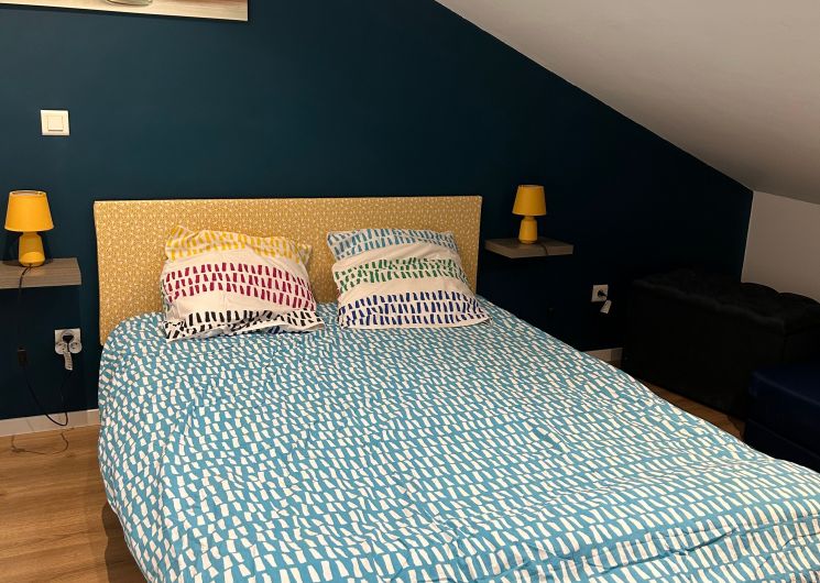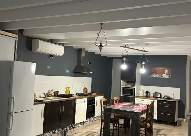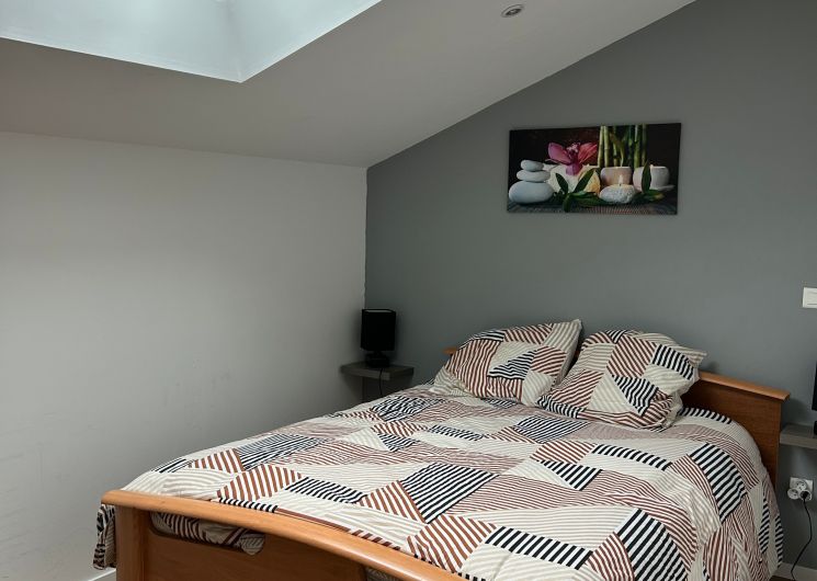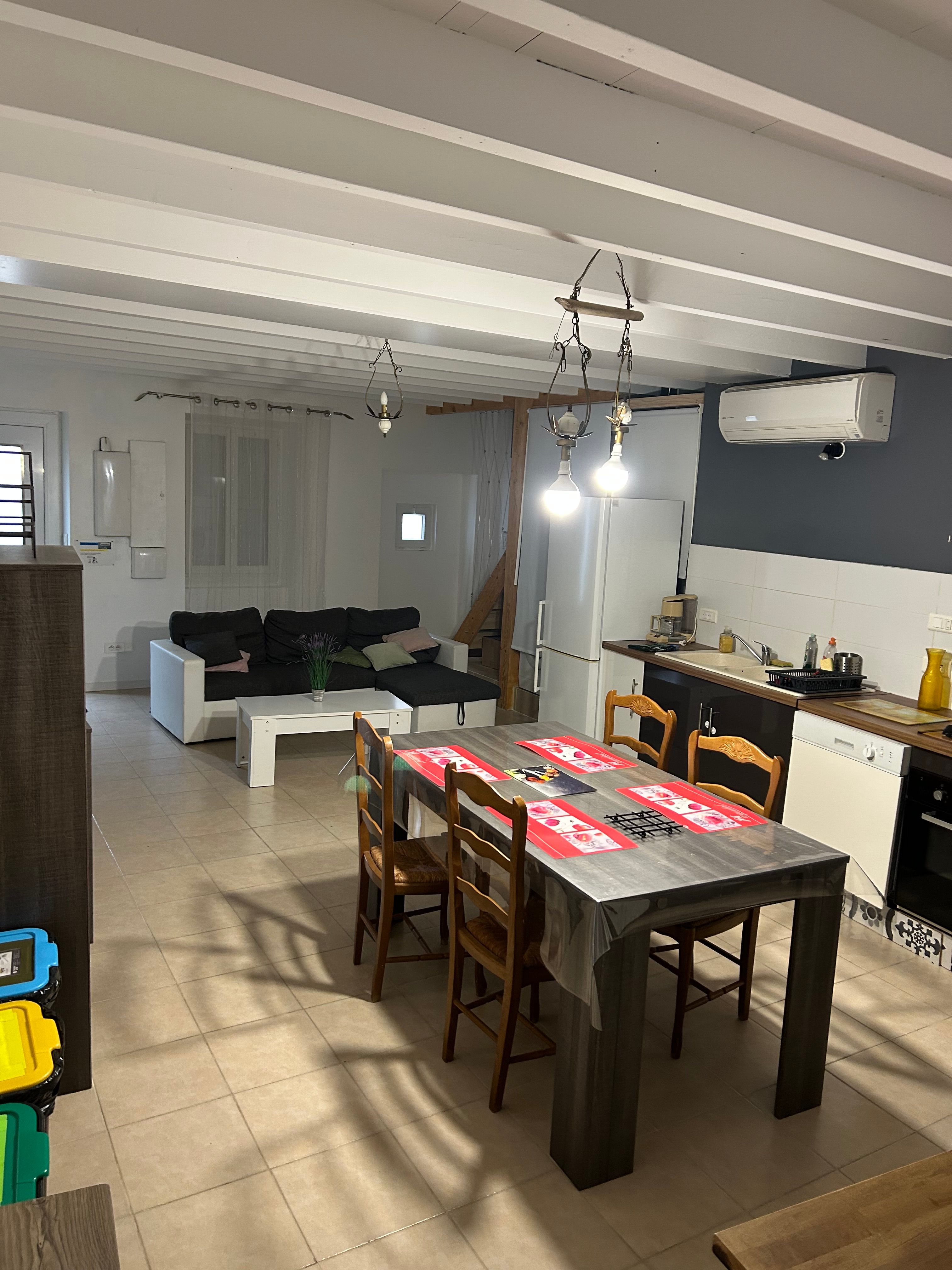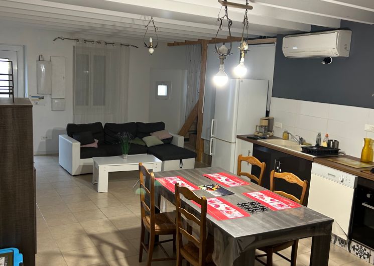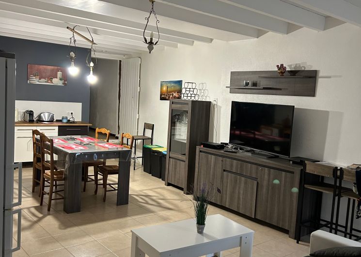 Au rez-de-chaussée, le logement comprend une pièce à vivre (coin-cuisine avec éléments intégrés four, micro-ondes, plaque, réfrigérateur, congélateur table chaises, lave-vaisselle), espace salon (1 canapé, 2 fauteuils, table basse, TV), une marche pour aller dans une chambre (1 lit 140 avec salle d’eau. Un wc privatif. Le couloir donne accès à un jardin avec table et chaises de jardin, chaises transats, barbecue. Au 1er étage, un couloir desservant 2 chambres (1 lit 140 pour l’une et 1 lit 120 pour la deuxième sous pente), une salle de bain et un wc indépendant. Logement climatisé avec la wifi. Linge de lit de toilette et de maison fournis compris dans le prix. Parking public en face de la maison pour le stationnement.