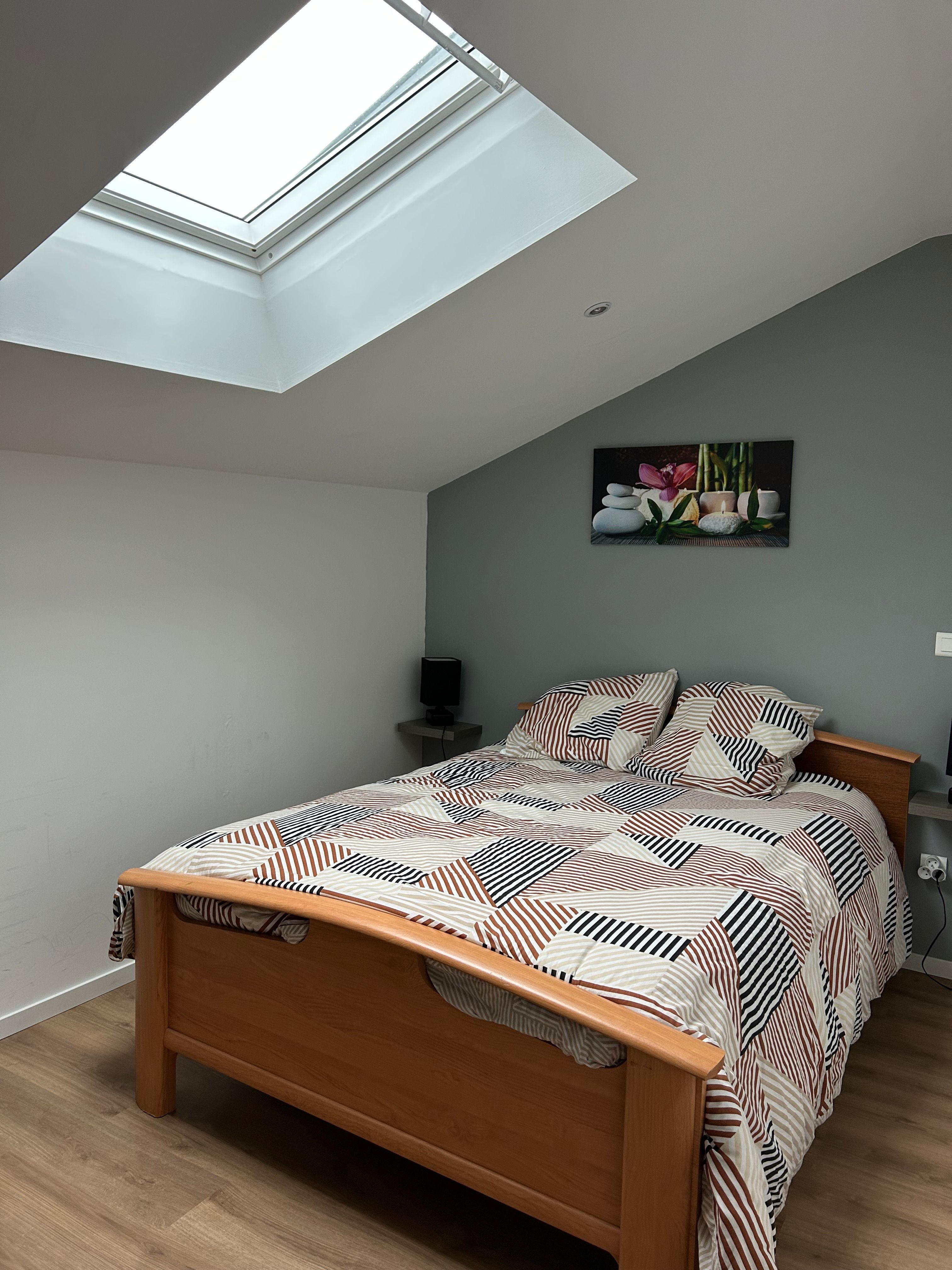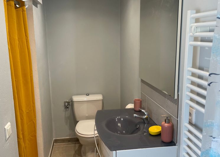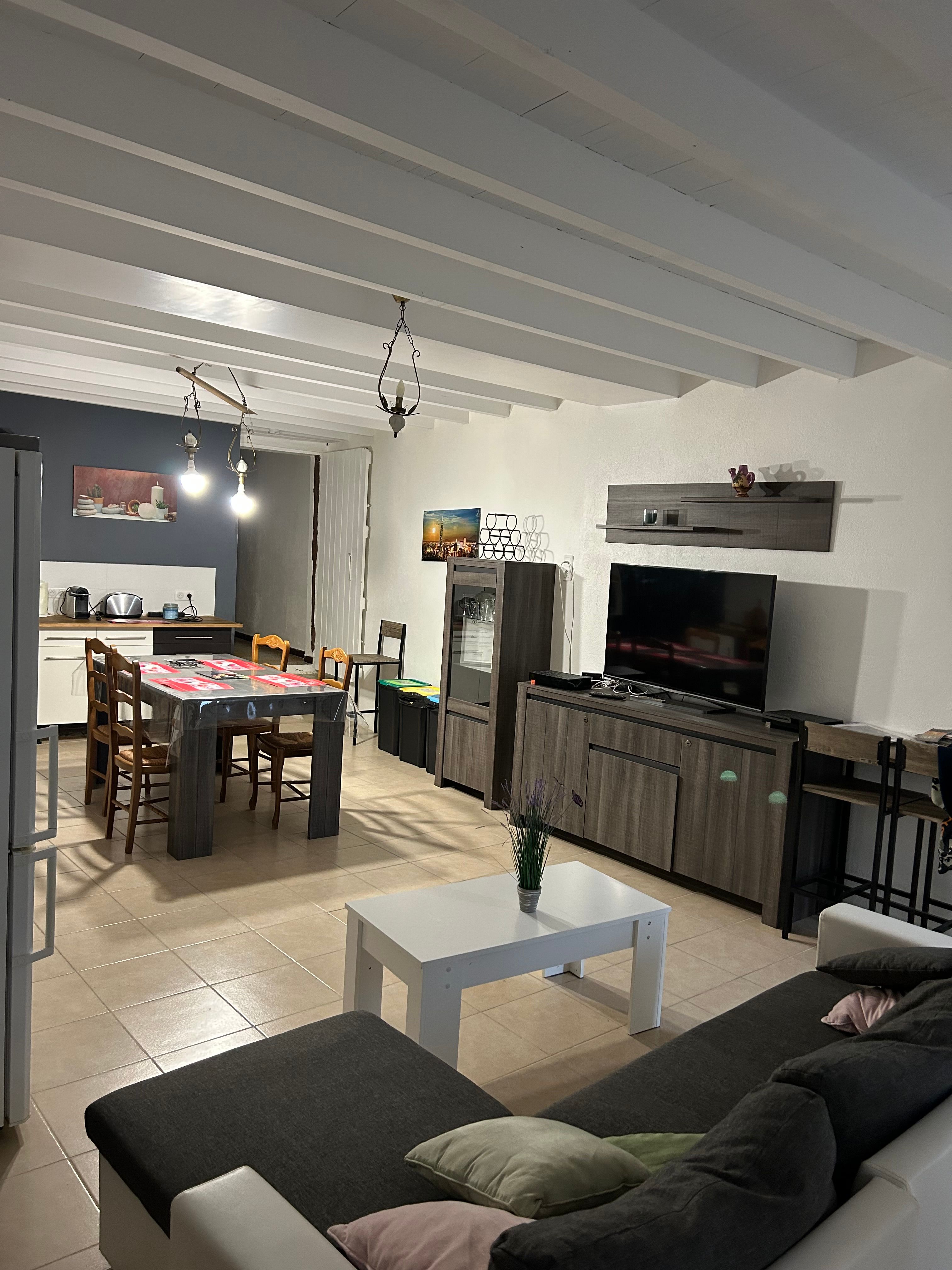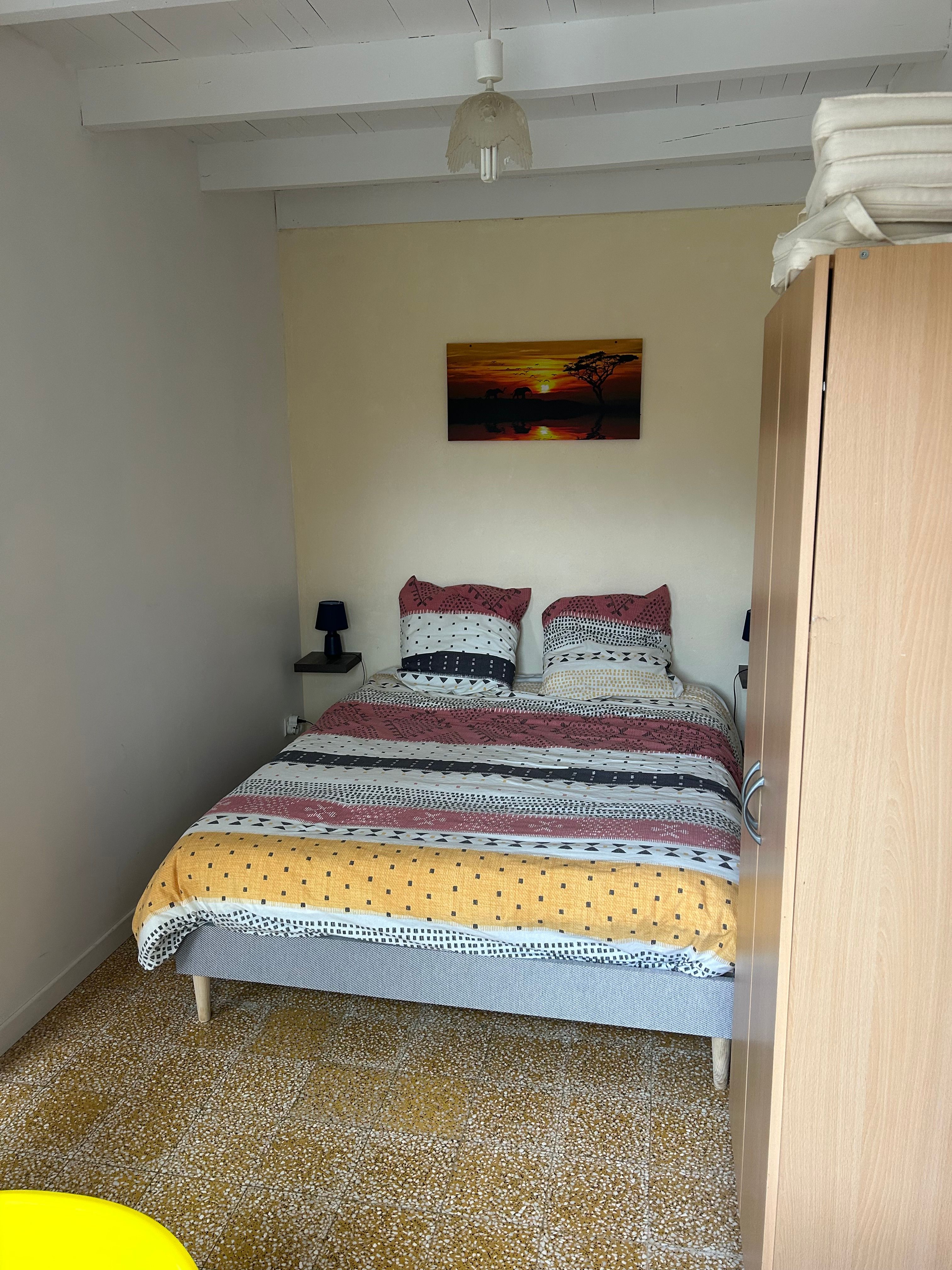 Au rez-de-chaussée, le logement comprend une pièce à vivre (coin-cuisine avec éléments intégrés four, micro-ondes, plaque, réfrigérateur, congélateur table chaises, lave-vaisselle), espace salon (1 canapé, 2 fauteuils, table basse, TV), une marche pour aller dans une chambre (1 lit 140 avec salle d’eau. Un wc privatif. Le couloir donne accès à un jardin avec table et chaises de jardin, chaises transats, barbecue. Au 1er étage, un couloir desservant 2 chambres (1 lit 140 pour l’une et 1 lit 120 pour la deuxième sous pente), une salle de bain et un wc indépendant. Logement climatisé avec la wifi. Linge de lit de toilette et de maison fournis compris dans le prix. Parking public en face de la maison pour le stationnement.