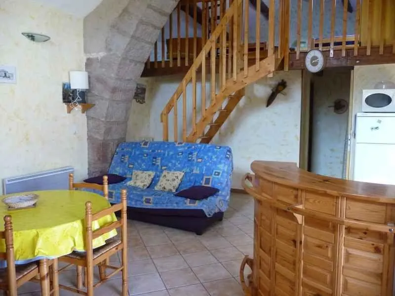 Située dans un hameau, cette location de vacances avec wifi/Internet, dispose au rez-de-chaussée d’un séjour avec cheminée, clic-clac et télévision, ouvert sur la cuisine (micro-ondes, mini-four, lave-vaisselle, plaques mixtes, réfrigérateur avec partie congélation …). Vous apprécierez la voûte et son arc en ogive typiques de l’architecture locale. Une chambre avec un lit en 140, une pièce de rangement, ainsi qu’une salle d’eau (lave-linge) et des toilettes se trouvent à cet étage de la maison.