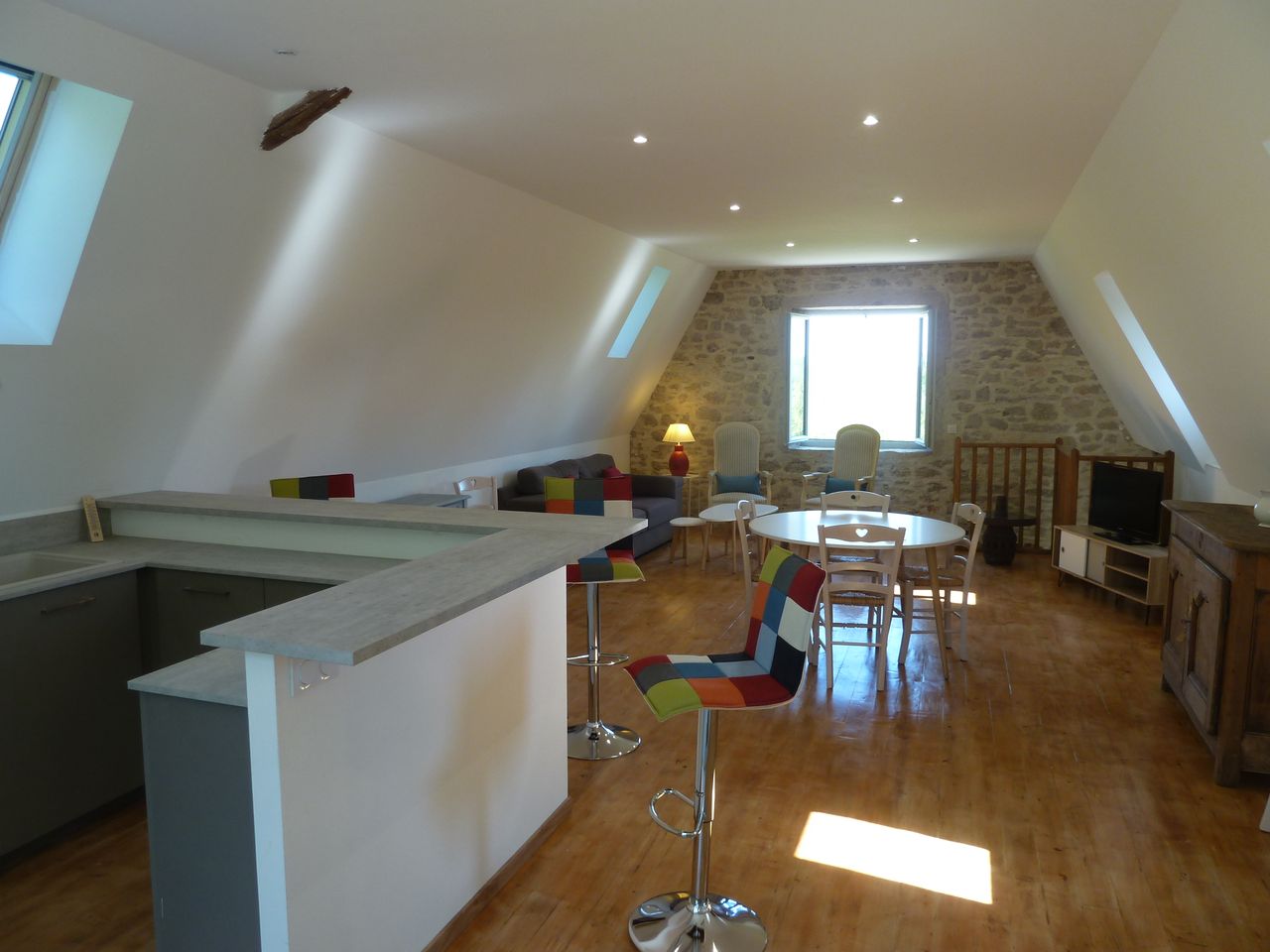 Une grande salle commune avec cuisine moderne équipée et deux chambres en sous sol indépendantes. Possibilité d’un couchage d’appoint. A disposition un grand parking, terrains de badminton et de pétanque près de la piscine, une douche extérieure, une pergola pour les repas avec mobiliers de jardin sur un domaine de 4 hectares