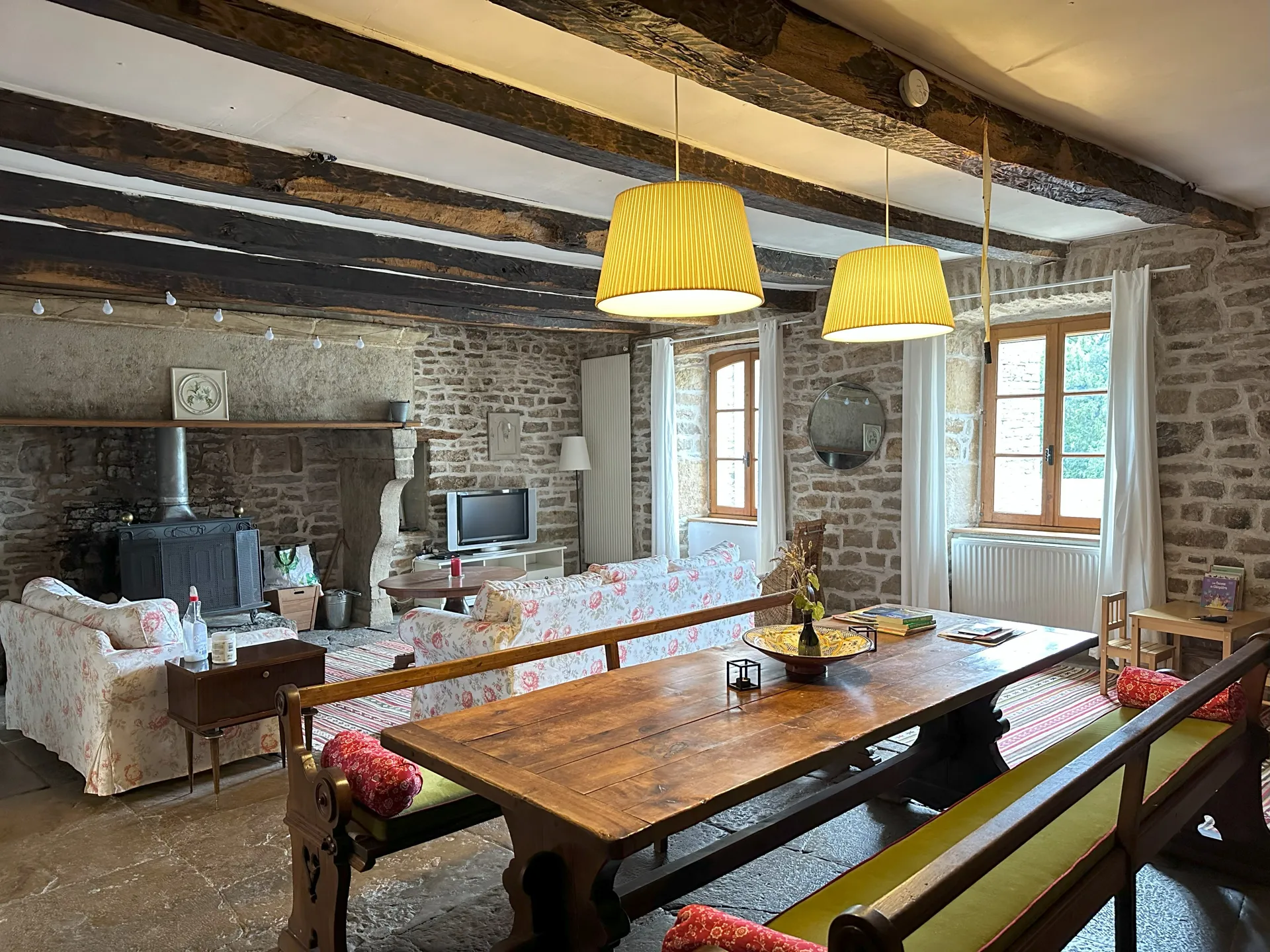 A l’intérieur, la pierre, le bois et les vastes pièces sont à l’honneur : un ensemble fort agréable et chaleureux ! L’ancien poêle à bois Godin autorise de belles veillées au coin du feu. A l’extérieur, un jardin privé exposé Sud et sans vis à vis comprend une terrasse, du mobilier de jardin, un barbecue et un auvent pour se mettre à l’abri. Ce logement permet de passer des moments de détente inoubliables.
