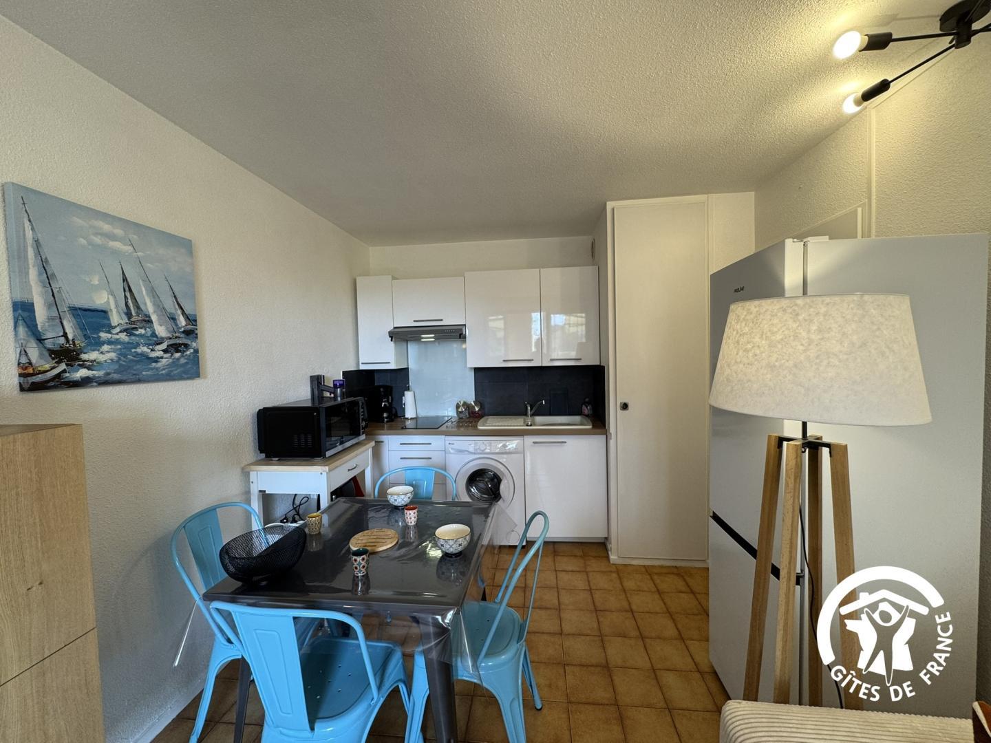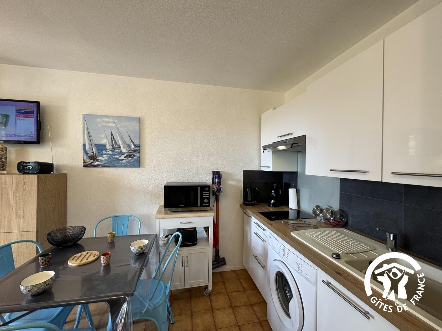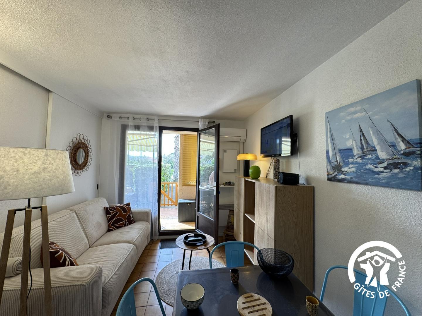 À deux pas de la plage et à quelques minutes du charmant port de Saint Cyprien, ce gîte de plain-pied dans une résidence, vous offre une parenthèse de calme et de sérénité. Conçu pour deux personnes, il allie confort moderne, décoration épurée et ambiance chaleureuse. Vous profiterez d’un jardin clos, aménagé et parfait pour se détendre après une journée au grand air. Les pistes cyclables au départ du gîte, complètent ce cadre idyllique entre terre et mer. Saint Cyprien séduit par la diversité de ses paysages, ses nombreuses activités nautiques et son port de plaisance l’un des plus grands de la côte méditerranéenne française. Découvrez le marché local et dégustez les spécialités catalanes. Son emplacement idéal permet de découvrir les trésors des Pyrénées-Orientales : proche de Collioure et les beautés de la Côte Vermeille, de Perpignan et de l’Espagne. Logement de plain-pied, aménagé comme suit : – Pièce à vivre avec salon/séjour et coin cuisine – Chambre avec lit de 140