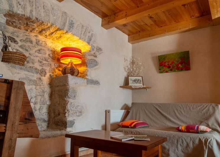 Maison de pierre située dans un hameau caussenard surplombant les falaises des Gorges du Tarn au cœur d’une exploitation agricole (élevage bovin). Rénovée avec des matériaux écologiques, elle comprend: au RDC: Cuisine intégrée (lave-vaisselle, micro-ondes, frigo/congélateur), séjour/salon (TV, lecteur DVD, canapé BZ, poêle à cheminée), salle d’eau (lave-linge) avec WC. A l’étage: 1 chambre (1 lit en 140), 1 chambre (2 lits en 90), WC. Espace extérieur non clos avec salon de jardin et barbecue, lit bébé à disposition sur demande.