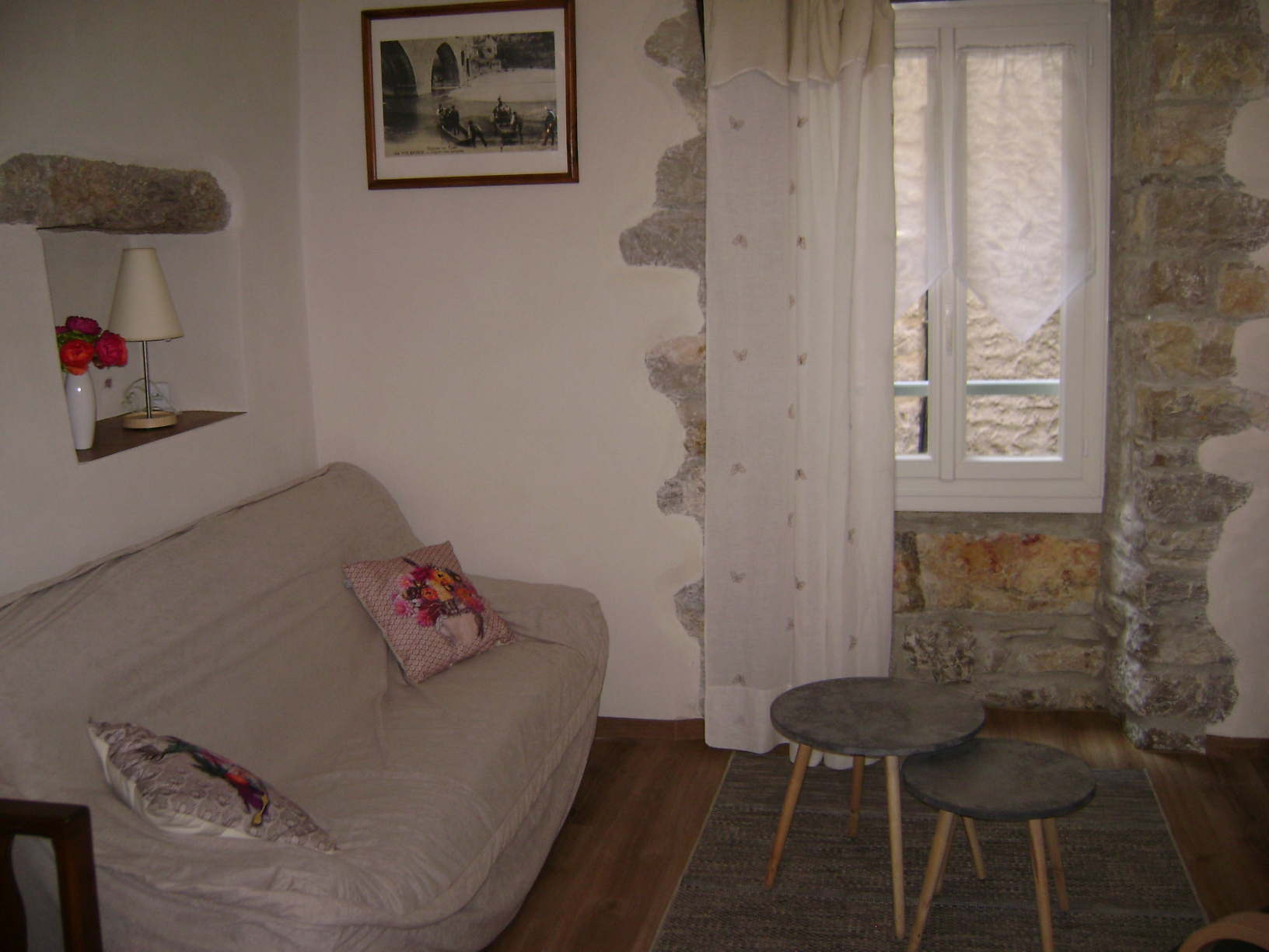 Au coeur des Gorges du Tarn, dans le vieux village médiéval de SAINTE-ENIMIE, maison mitoyenne restaurée dans le style du pays, donnant sur une rue piétonne. Idéalement situé pour pratiquer de nombreuses activités : baignade (sur le lieu même), canoë, VTT, escalade, randonnées pédestres. Commerces sur place, nombreux restaurants, boutiques artisanales . Parking gratuit à 150 m Escalier pour accèder à l’entrée. 1er niveau: séjour, coin cuisine, 2ème étage : chambre (lit 2 places), salle de bains, WC, 3ème étage : chambre mansardée (1 lit 2 places – 1 lit 1 place), canapé, lave-linge, lave-vaiselle, TV couleur, lecteur D.V.D, four micro-ondes, chauffage électrique. Location de draps.