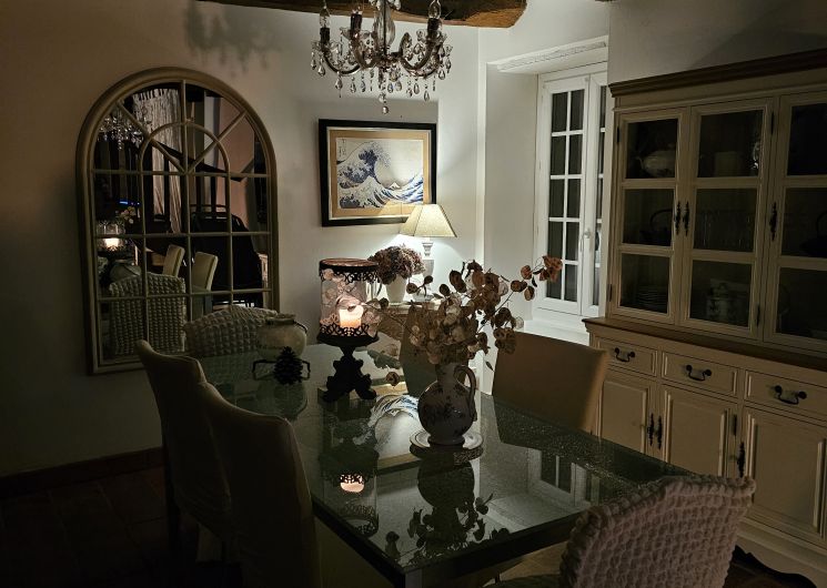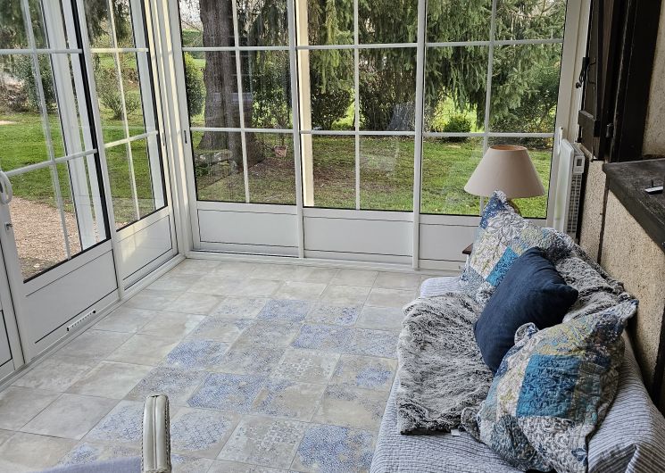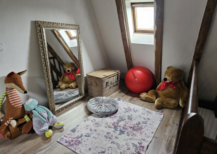 L’habitation est répartie ainsi : partie jour comprenant le salon avec poêle, la salle à manger, la cuisine et partie nuit comprenant 3 chambres, une salle de bain et un WC séparé. Une véranda chauffée et munie de stores permet de profiter de la nature en toutes saisons. Une mezzanine fait office d’espace de jeu pour les enfants. L’habitation est en rez de chaussée, mais il y a 3 marches pour y accéder.