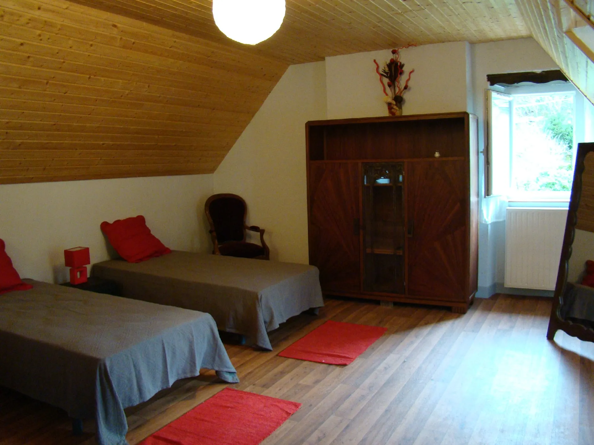 1 grande chambre mansardée avec 2 lits en 90 et 1 clic clac en 140) avec 1 télévision.