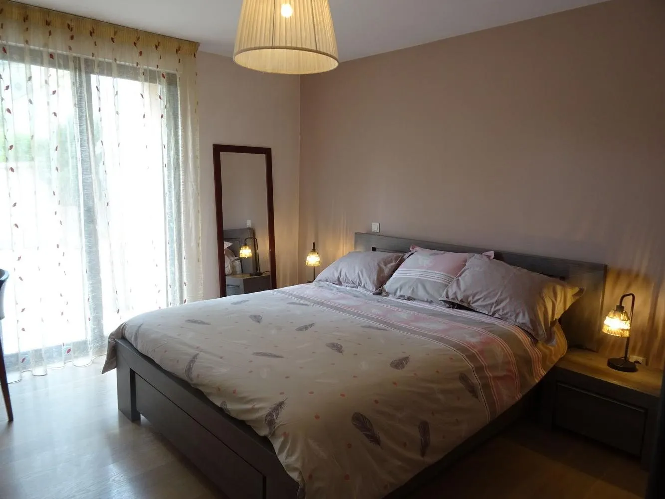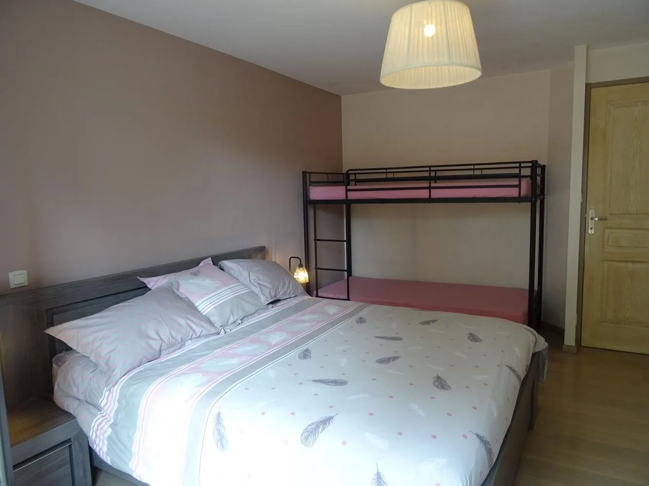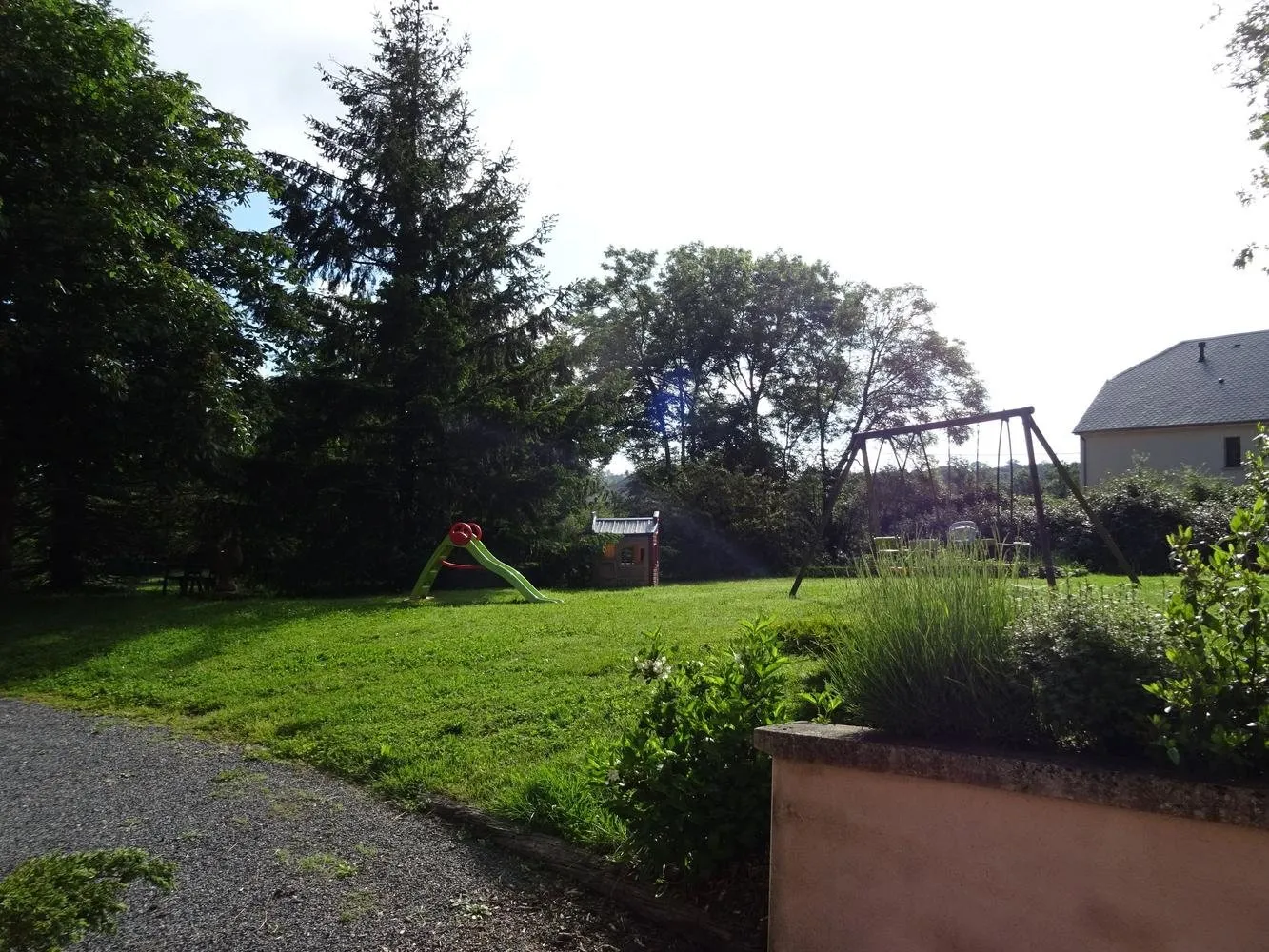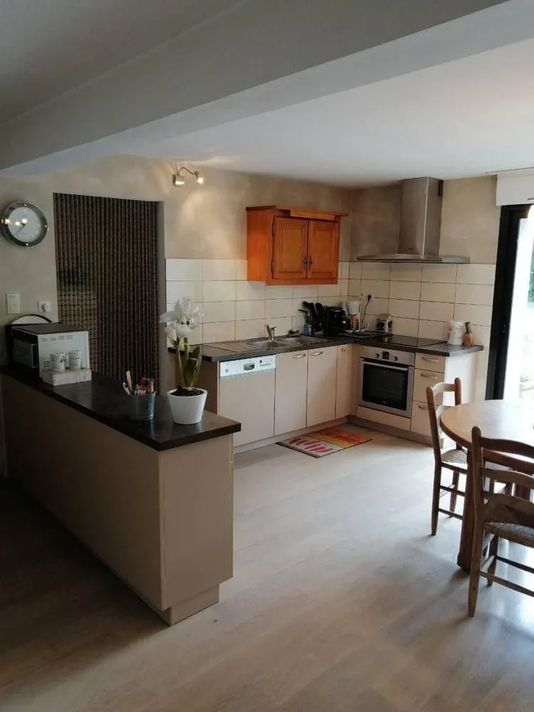 Location de plain-pied de 70 m². Situé au rez-de-chaussée de la maison des propriétaires. Cuisine intégrée tout équipée (lave-vaisselle, frigo, congélateur, micro-onde, four, cafetière, bouilloire, grille-pain…). Aspirateur. Canapé convertible. Télévision. 1 Chambre donnant sur la terrasse : 1 lit 160×200 et 2 lits superposés en 90. Lave-linge et sèche-linge collectif. Accès internet. Piscine découverte chauffée en commun avec les propriétaires. Jardin. Jeux pour enfants : portique, toboggan. Draps et linge compris, lits faits à l’arrivée. Prêt matériel bébé.