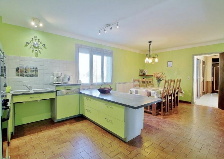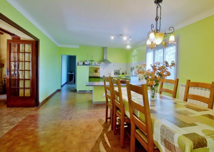 Cette maison comprend : 1 cuisine avec coin repas, 1 salon, 3 chambres (2 lits 140 et 2 lits 90). 2 salles d’eau dont une avec WC, WC indépendant. Abri voiture. Grande cour, terrain clos. Ouvert toute l’année. .