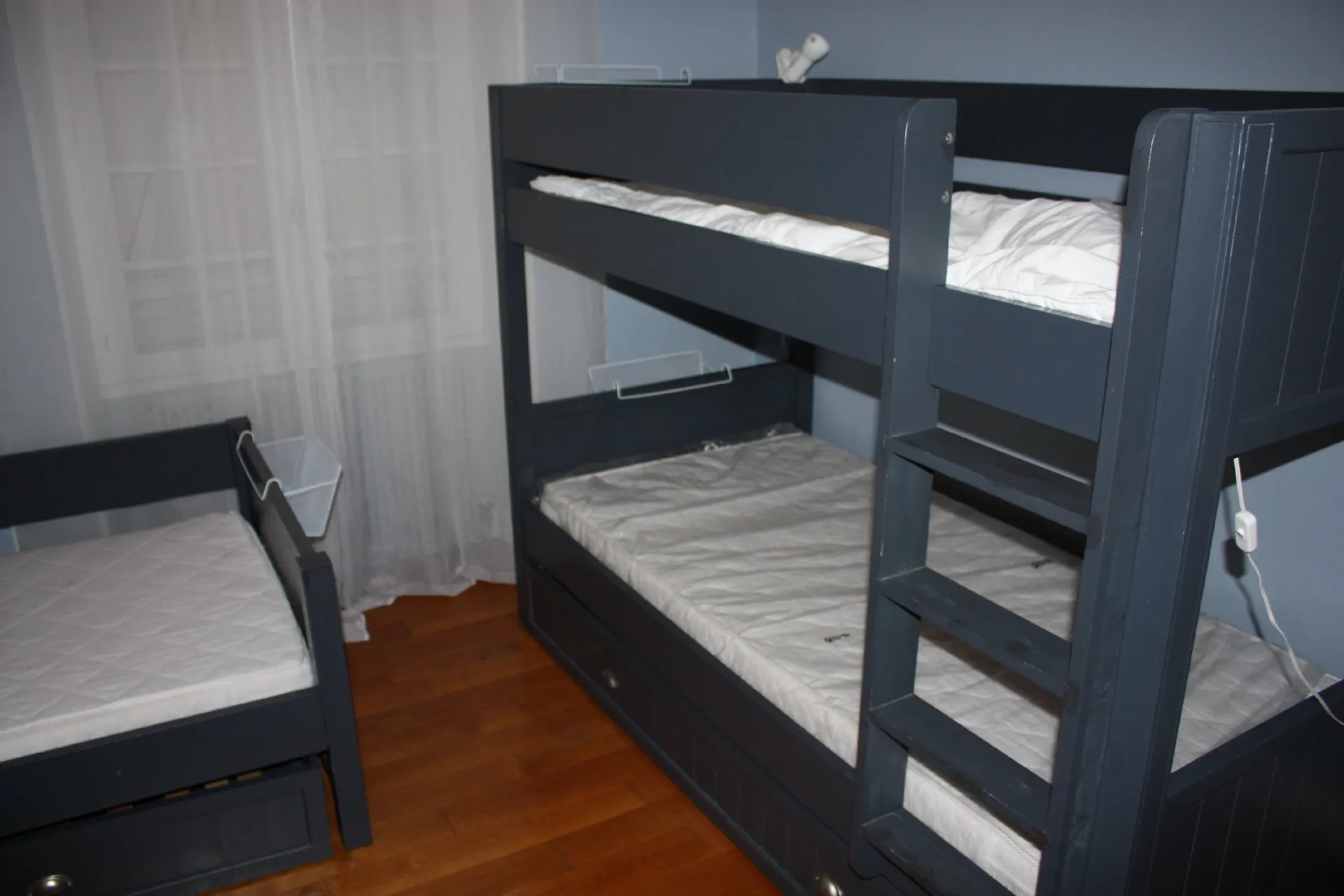 Equipement bébé (lit, chaise) : Deux lits enfant sont à disposition : un lit métal 140 x 60 dans la chambre Rodelle et un lit pliant 120 x60, comprenant matelas, alaises et draps housse, oreillers, couette et couvertures.