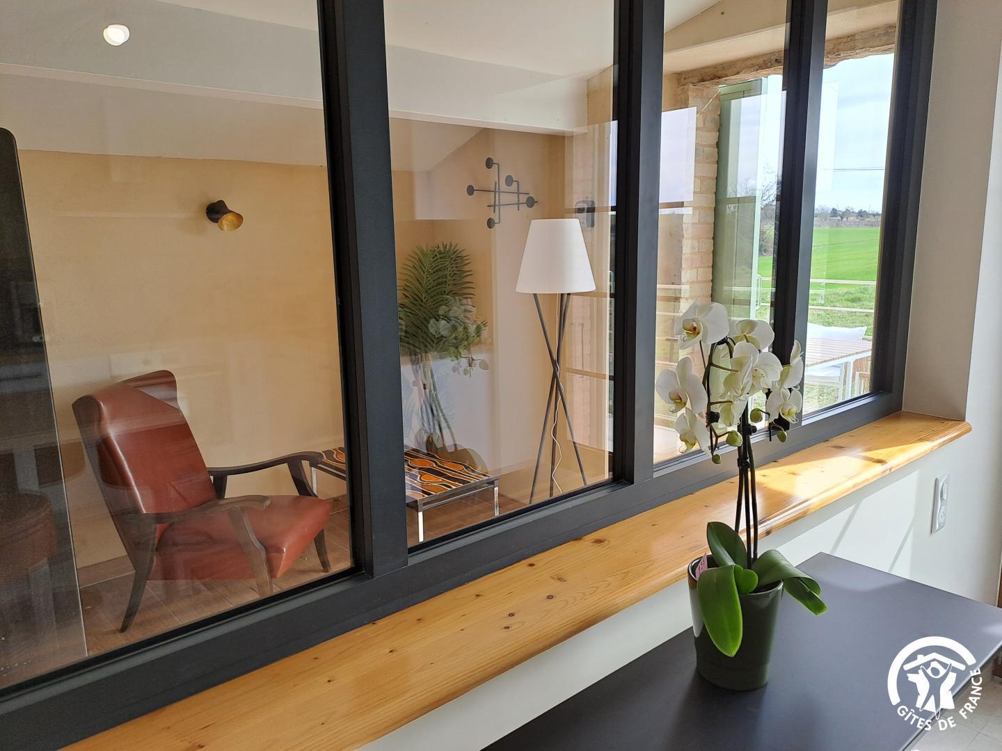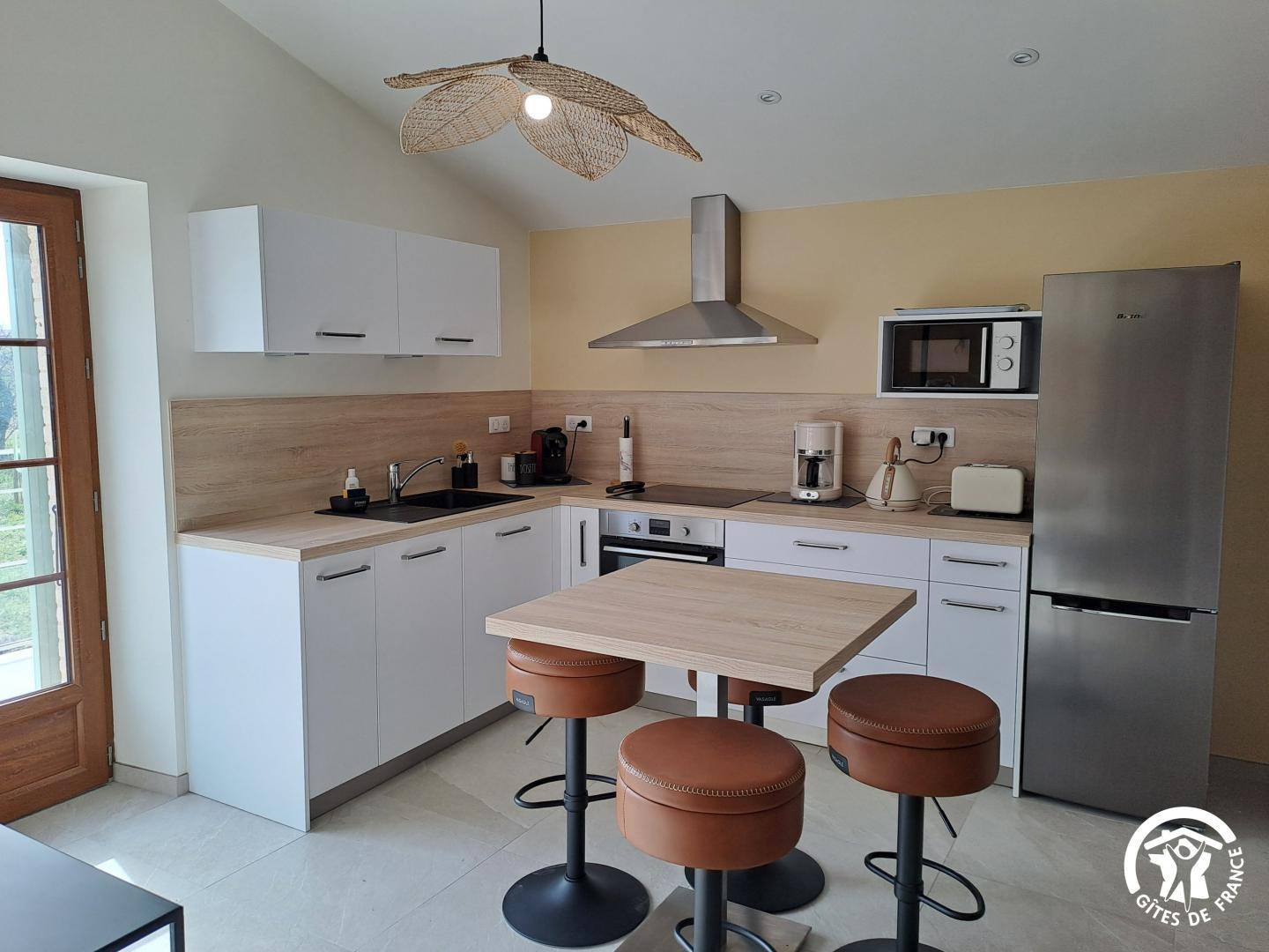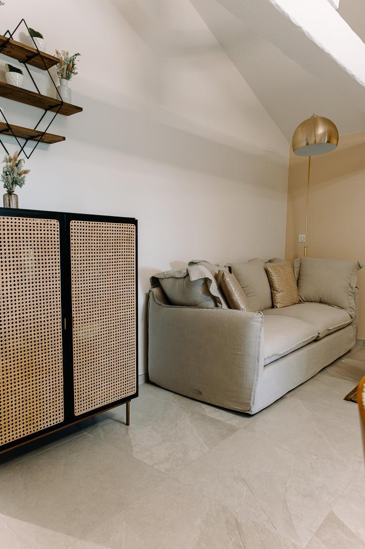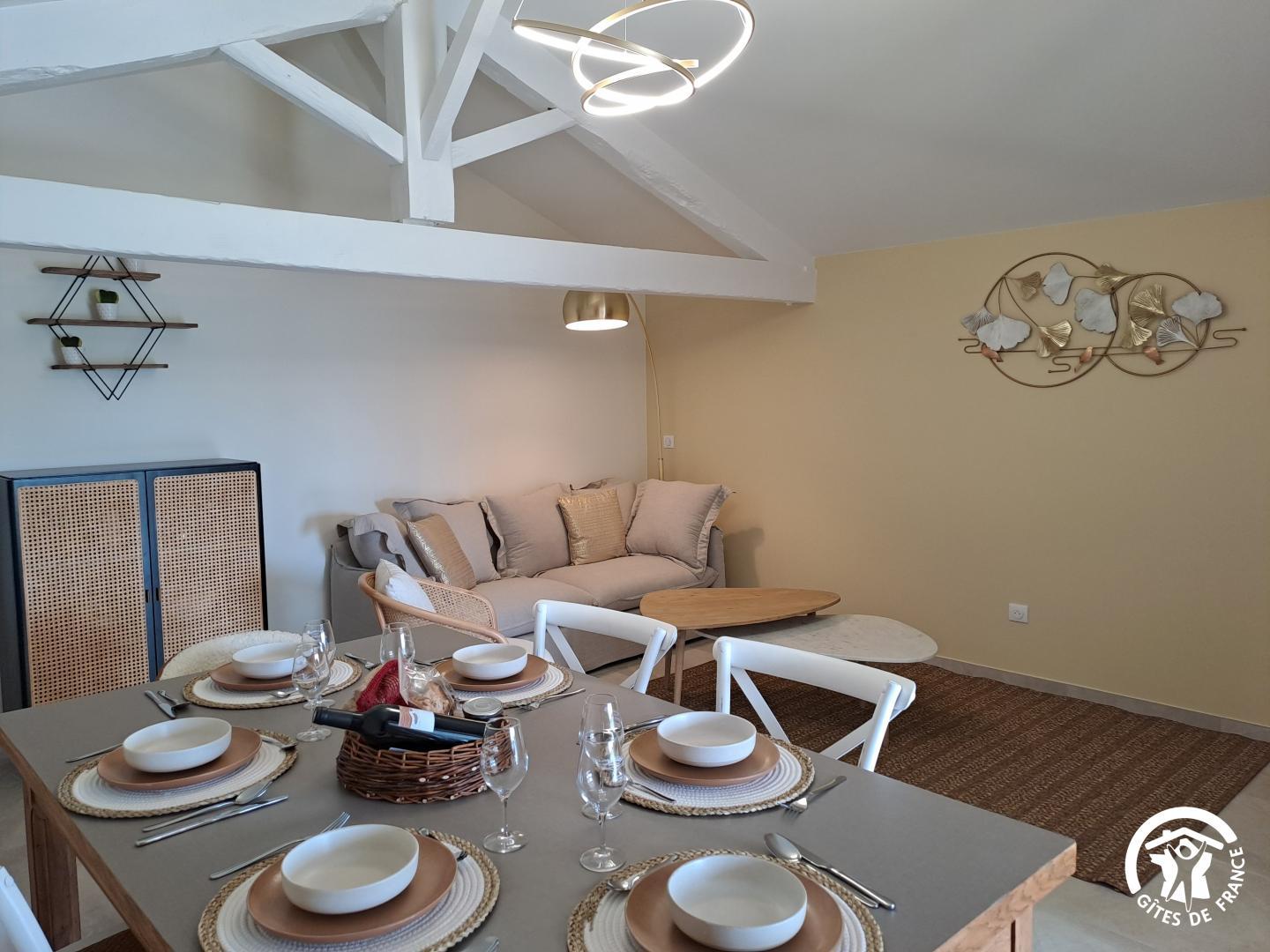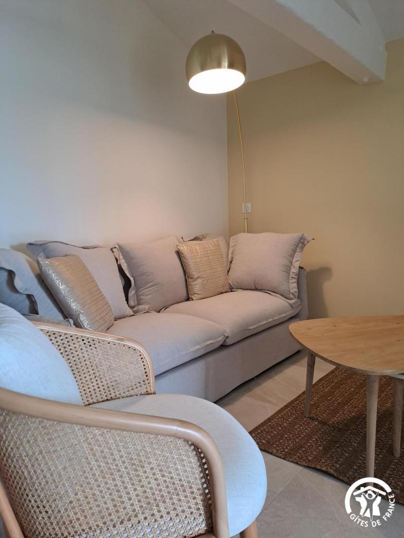 Dès l’entrée, vous serez accueilli dans un hall équipé d’une petite bibliothèque avec des ouvrages sur la région. La pièce de vie se compose d’une cuisine bien équipée, ouverte sur la terrasse, ainsi que d’un séjour où se mêlent harmonieusement matériaux anciens et touches contemporaines. Deux chambres :