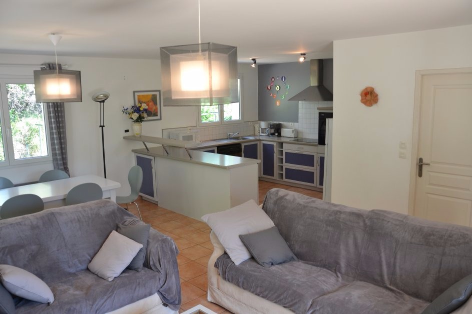 Gîte indépendant au sein d’un environnement arboré et entouré de vignes.Pouvant accueillir 6 personnes, le gîte climatisé est composé d’un spacieux espace de vie salon/salle à manger ouvert sur la cuisine équipée ( (lave-vaisselle, réfrigérateur-congélateur, four, micro-ondes, grille-pain, cafetière électrique (traditionnelle + senseo), plaque induction 3 feux, etc.)Le salon est équipé d’une TV, un lecteur DVD et une radio. Un couloir dessert les 3 chambres : Une chambre avec 1 lit en 140 cm x 190 cm, 2 tables de chevet, armoire et salle d’eau privative avec douche et lavabo-vasque, WC indépendant Une chambre avec 1 lit en 160 cm x 200 cm, 2 tables de chevet, bureau, penderie Une chambre avec 2 lits en 90 cm x 190 cm, 2 tables de chevet et penderie Une seconde salle de bain avec baignoire, 2 vasques lavabo, lave-linge et un WC indépendant. Côté extérieur, profitez des journées ensoleillées sur la terrasse avec barbecue, salon de jardin et bains de soleil. Stationnement privatif et sécurisé dans la propriété. Chauffage électrique pendant la période froide à la charge des locataires.Les tarifs incluent 8 KW d’électricité par jour. Au-delà, il sera demandé un supplément par KW au prix actuel du marché.Draps, serviettes et ménage en option. La maison est située à : 15 kms de la mer (Valras Plage, la Redoute, Portiragnes Plage, pour les plages les plus proches ; sinon Cap d’Agde, Sète, etc.). 4 kms de Béziers et des grandes surfaces. Nombreuses galeries commerciales dans un rayon de 6 kms (Auchan, Casino, Leclerc, Carrefour, etc). 1 km du village de Boujan-sur-Libron avec de nombreux commerces, médecins, clinique et pharmacie 7 kms du golf de Saint-Thomas 20 kms des montagnes des Hauts du Languedoc : nombreuses promenades et animations durant l’été. 1 h environ de la frontière espagnole 45 minutes de Montpellier 1 h de Carcassonne et de sa cité médiévale 1 h 15 de Nîmes et de ses vestiges romains 20 minutes de Pézenas, ville du dramaturge auteur de comédies Molière 30 mn du port de Sète, ville du poète, auteur-compositeur-interprète Georges Brassens et de l’écrivain, poète et philosophe Paul Valéry 30 mn de Narbonne 1 h des Pyrénées et 2 h de Font-Romeu et de ses pistes de ski en hiver