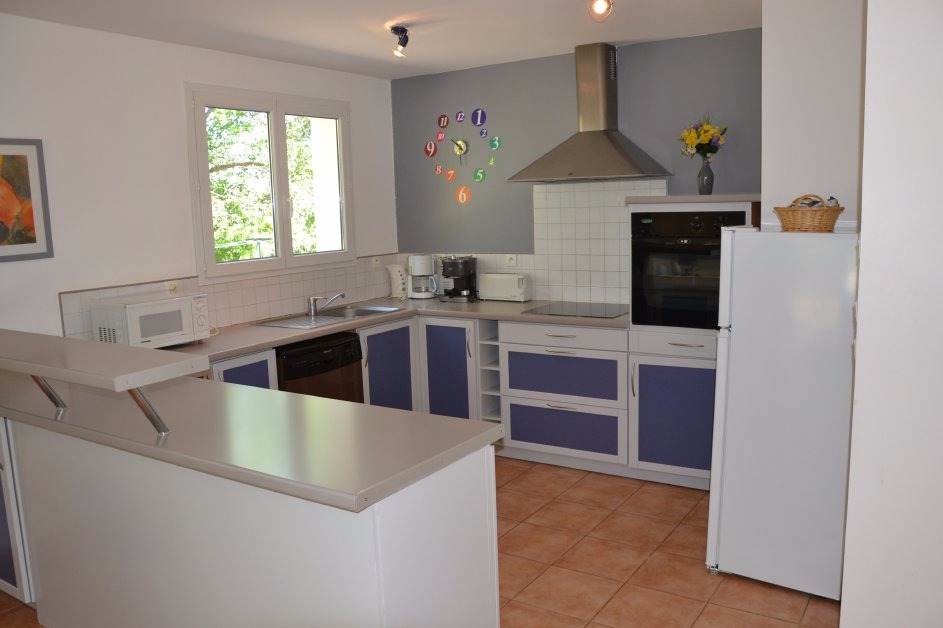 Gîte indépendant au sein d’un environnement arboré et entouré de vignes. Pouvant accueillir 6 personnes, le gîte climatisé est composé d’un spacieux espace de vie salon/salle à manger ouvert sur la cuisine équipée.