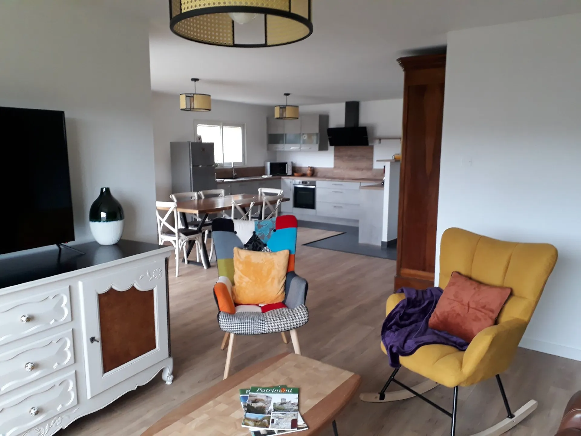 Un grand salon-séjour, une belle cuisine, toute équipée, spacieuse et lumineuse.