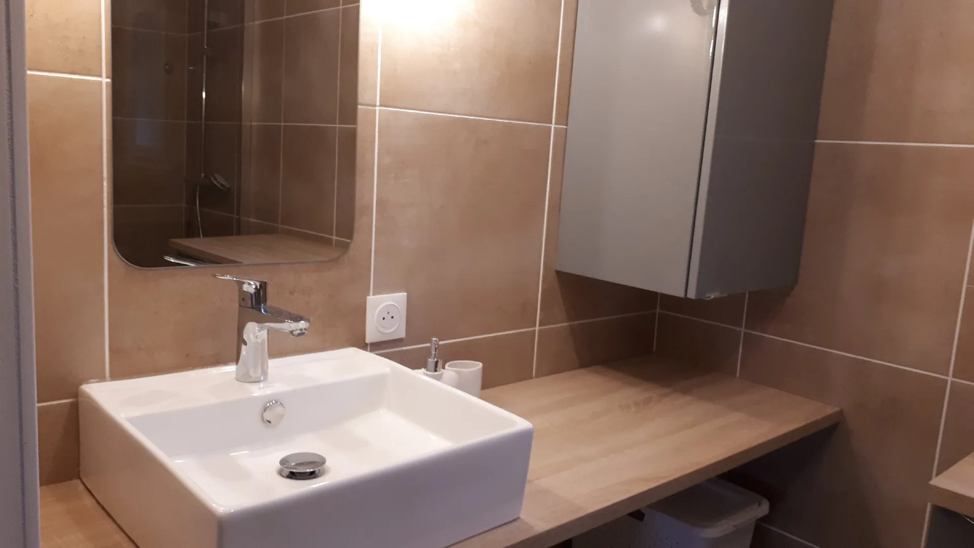 A 100 mètres de l’établissement thermal, grande maison neuve dominant le village. Prestations de belle qualité, 2 chambres