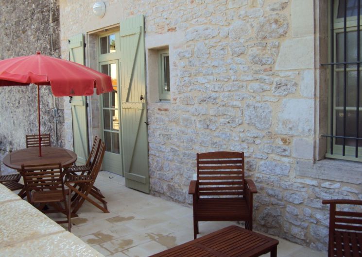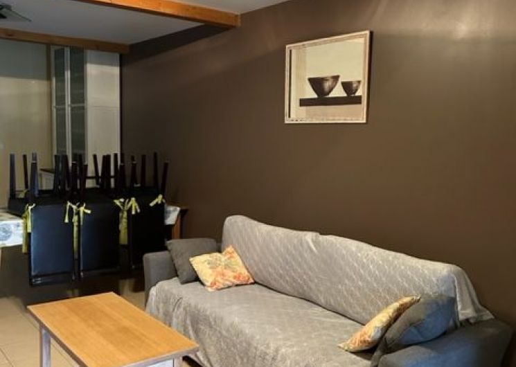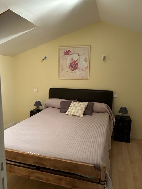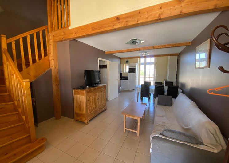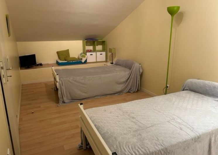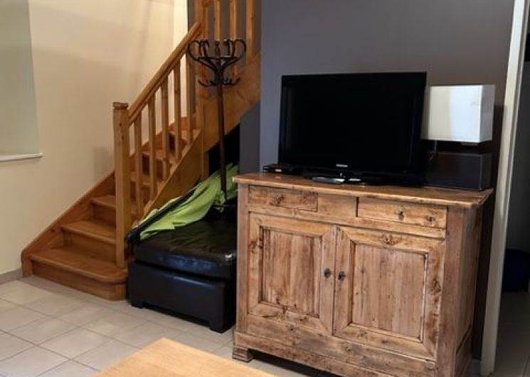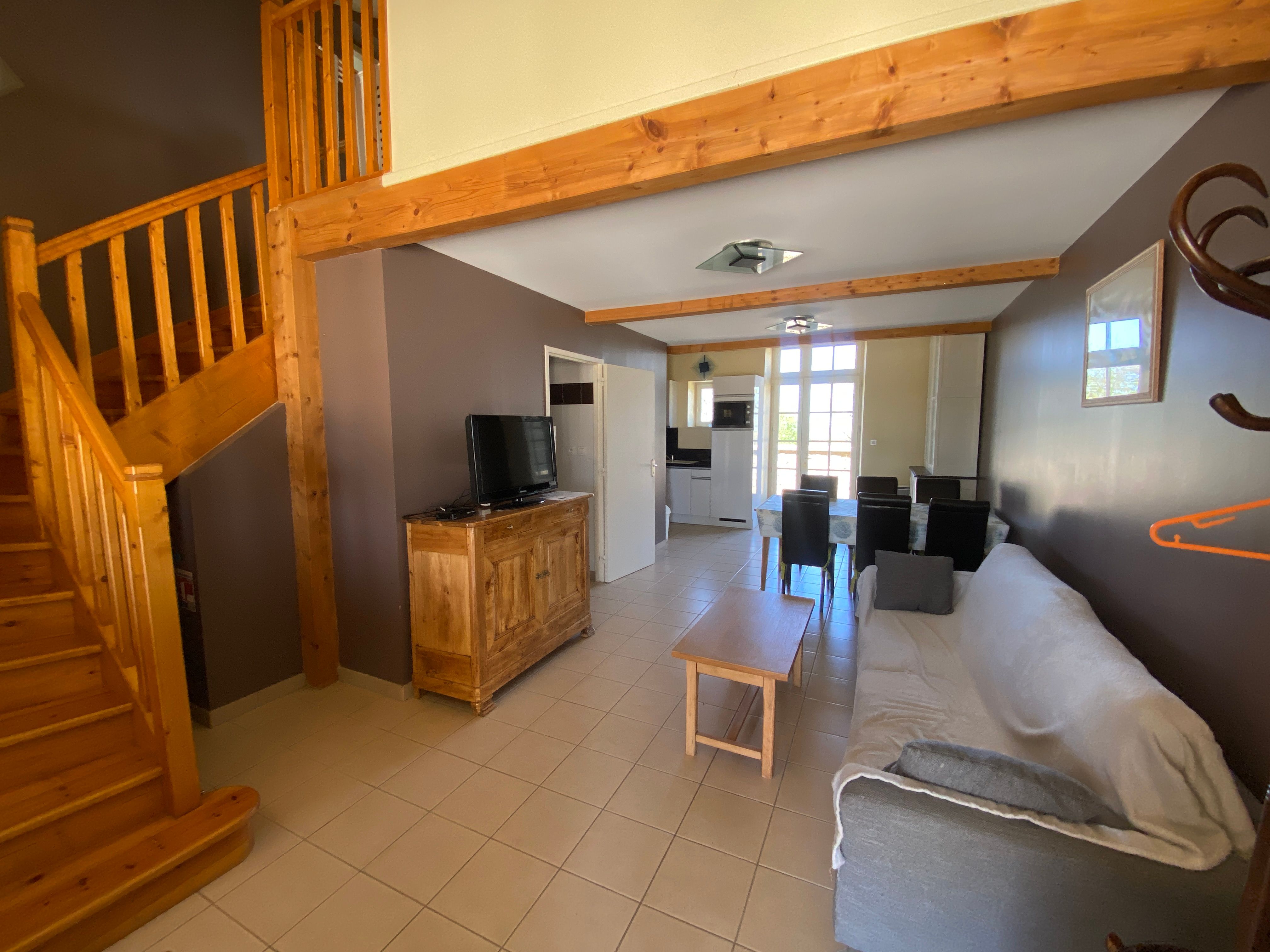 Aménagement du gîte sur 2 niveaux. Au rdc: séjour, salon (TV TNT, WIFI), cuisine intégré (MO, LV, LL, la machine à café utilise des capsules de type L’Or, mais elle est également compatible avec des capsules génériques). Des aménagements ont été faits afin de rendre le rdc accessible aux personnes handicapées, telle la création d’un sanitaire et d’une possibilité de couchage (canapé convertible). A l’étage, mansardé, 1 ch (1×140), 1 ch ( 2×90), salle d’eau avec WC. Terrasse privée avec salon de jardin et salon détente, barbecue. Pas de loc draps.