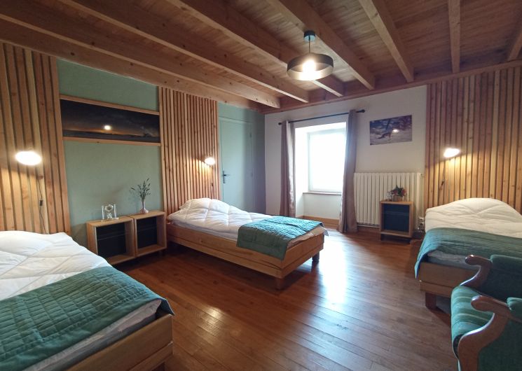 À Montgros, sur la commune de Nasbinals, découvrez le Gîte du Carrairou, une ancienne maison de famille entièrement rénovée pour allier charme d’antan et confort moderne. Vous profiterez d’une cour privative avec salon de jardin et barbecue, idéale pour partager des repas en plein air après une journée de découverte sur le plateau de l’Aubrac. Au rez-de-chaussée : une véranda lumineuse, un séjour chaleureux et convivial, un coin cuisine entièrement équipé, une salle d’eau avec douche et baignoire, un WC indépendant. À l’étage : une grande chambre avec 3 lits simples (90×190), une chambre avec lit double (160×200) et sa salle d’eau privative (douche et WC) Le Gîte du Carrairou est le point de départ idéal pour explorer les grands espaces de l’Aubrac, partir sur les sentiers du chemin de Saint-Jacques-de-Compostelle, ou simplement profiter du calme d’un hameau typique. Parking à proximité (non privé)