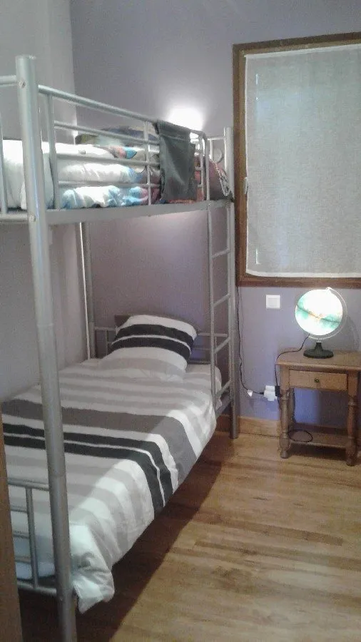 1 chambre avec 1 lit en 140, 1 cabine avec 1 lit superposé 2×90, salle d’eau, WC indépendant, cuisine entièrement équipée ouverte sur le séjour. Séjour comprenant un canapé convertible, TV, cheminée. Lave-vaisselle, lave-linge, chauffage électrique, terrain privatif non clos, salon de jardin.