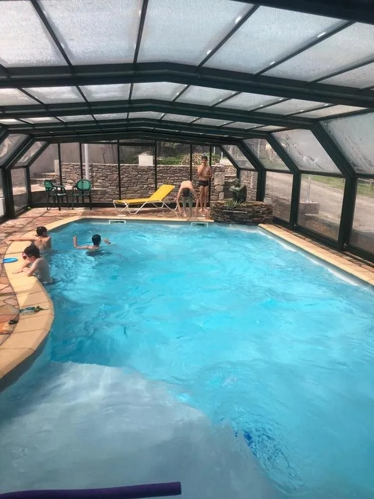 Gîte/appartement aménagé à l’étage dans une maison comprenant 1 autre gîte au rez-de-chaussée, mitoyen à une annexe hôtelière (petit hôtel de 13 chambres), entrée indépendante, dans un village, lac de Pareloup à 500 m, en campagne. 4 chambres (3 lits 140, 3 lits 90), 4 salles d’eau privées à chaque chambre, coin-cuisine (lave-vaisselle)/salon (canapé, télévision, accès internet/wifi), chauffage complet électrique, terrasse privée au rez-de-chaussée de la maison (12m²), piscine commune (10×5) couverte (accessible du 15/05 au 30/09), terrain commun (200 m²), salle de jeux commune (ping-pong, baby-foot), salons de jardin, barbecue, parking privé. Location draps, linge de toilette. Taxe de séjour. Buanderie (lave-linge).