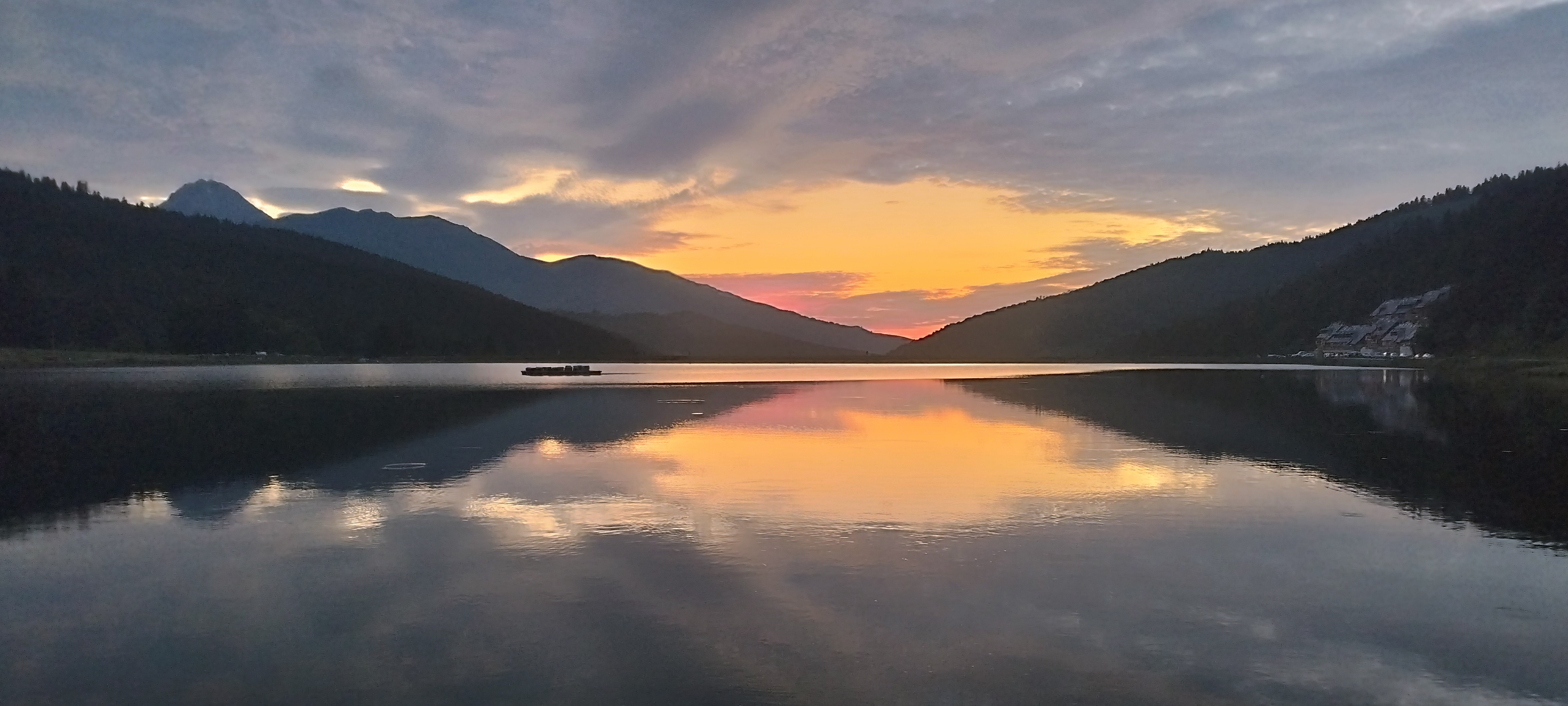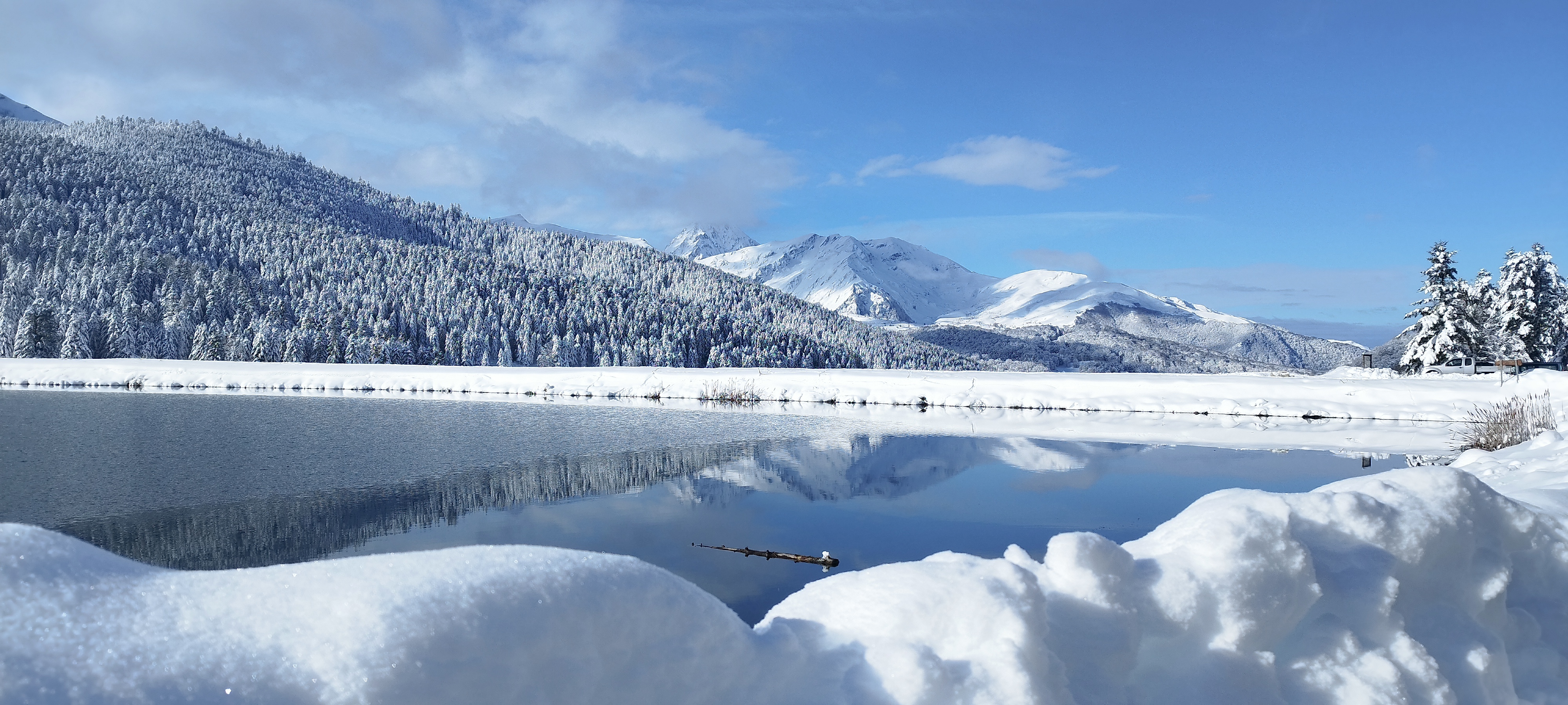 Gîte au bord du lac à Payolle, dit « le petit Canada », près de Campan (65), station familiale de ski de fond, altitude 1140 m. Vue exceptionnelle sur la montagne, le lac, la forêt, le Pic du Midi.