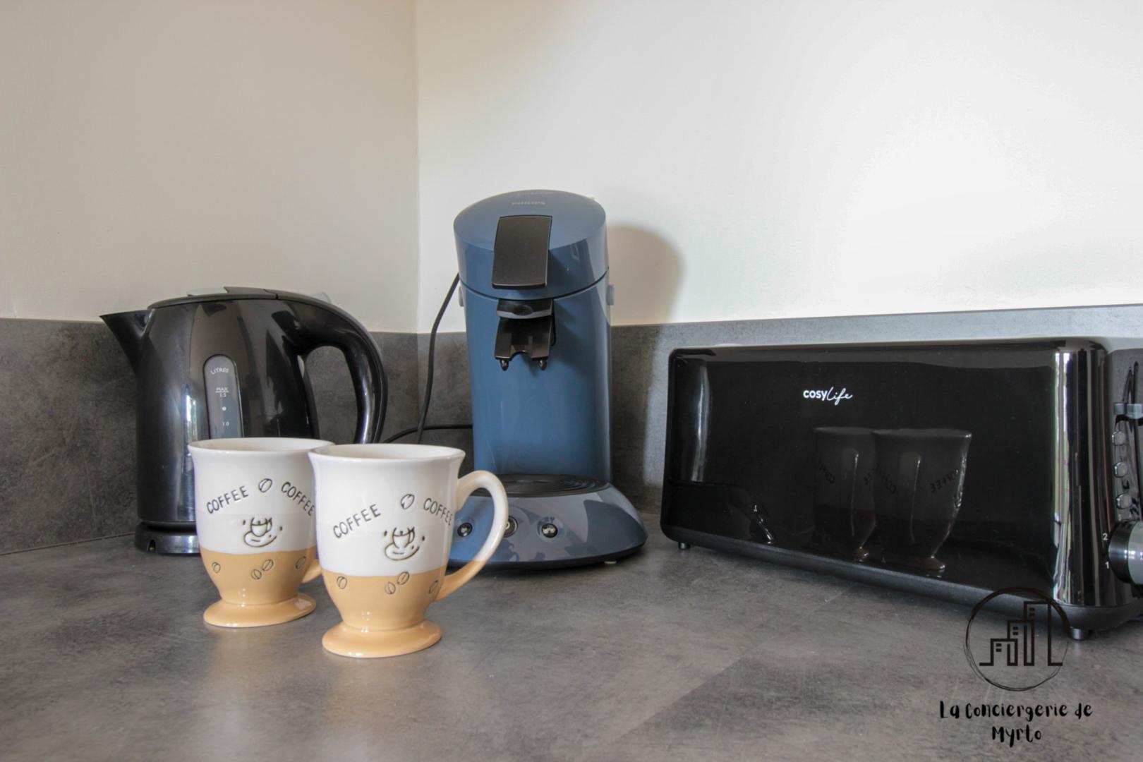 * cuisine toute équipée : réfrigérateur/congélateur, micro-ondes, plaque induction, four, lave-vaisselle, machine à café Senseo, bouilloire, grille-pain, etc… congélateur