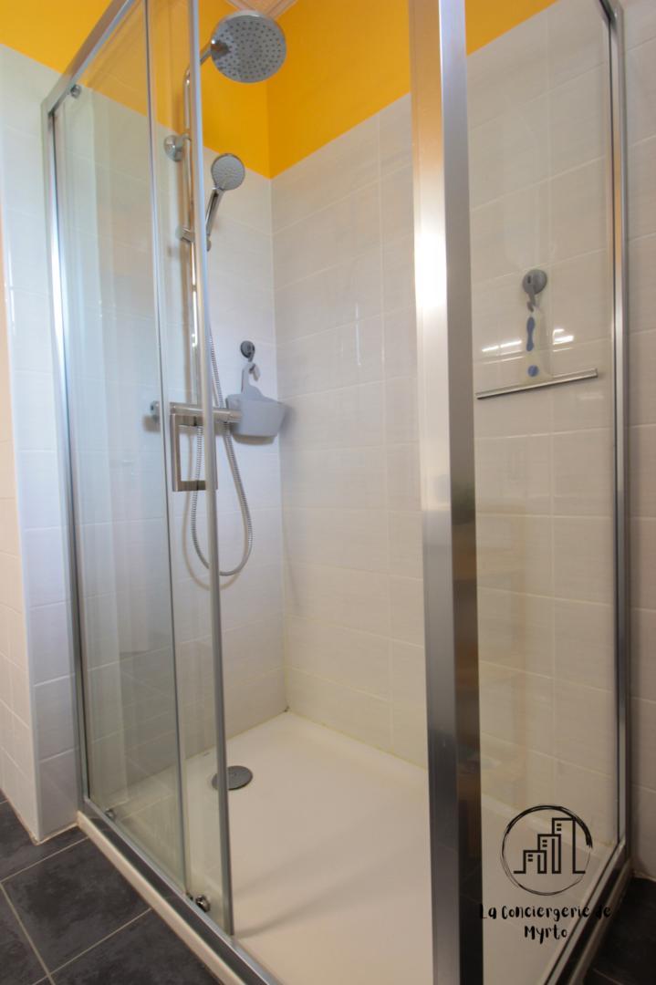 * chambre avec deux lits simples en 90 x 190, salle d’eau privative (douche à l’italienne, meuble vasque)