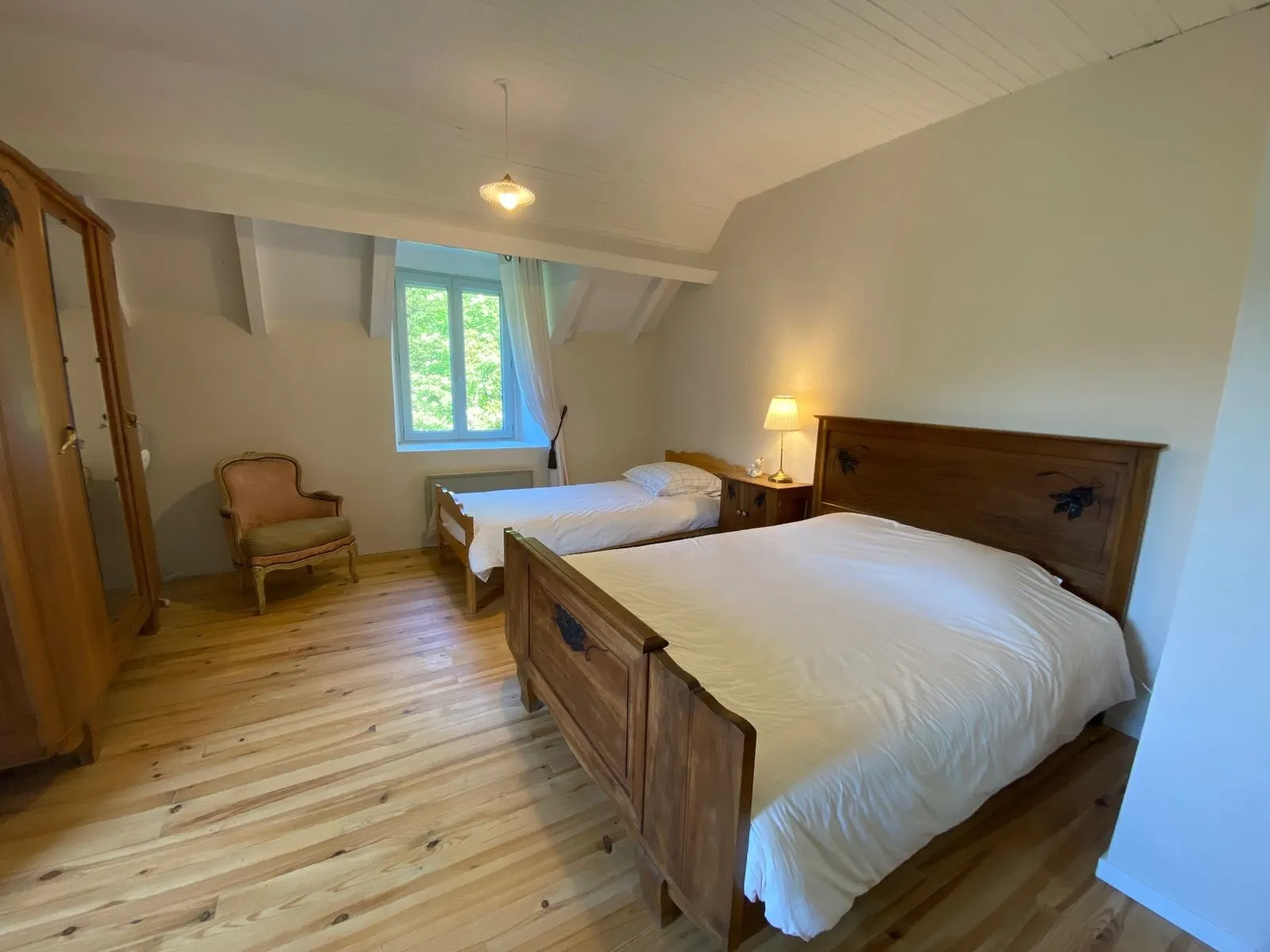 Gîte indépendant, sur 2 niveaux, dans un village, sur le Chemin de St Jacques de Compostelle. 2 chambres (1 lit 160, 1 lit 140, 2 lits 90), coin-cuisine (lave-vaisselle)/séjour (canapé, poêle à bois, télévision), salle d’eau (lave-linge), chauffage complet électrique, terrasse privée close (18m²), terrain privé clos (110m²), cour privée close (12m²), cave/ local à vélos, salon de jardin, barbecue, taxe de séjour. Location de draps et de linge de toilette. Chaise haute, lit bébé et baignoire bébé.