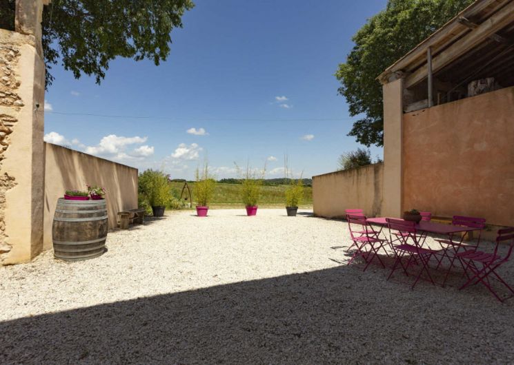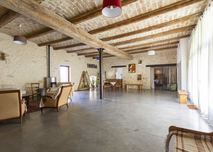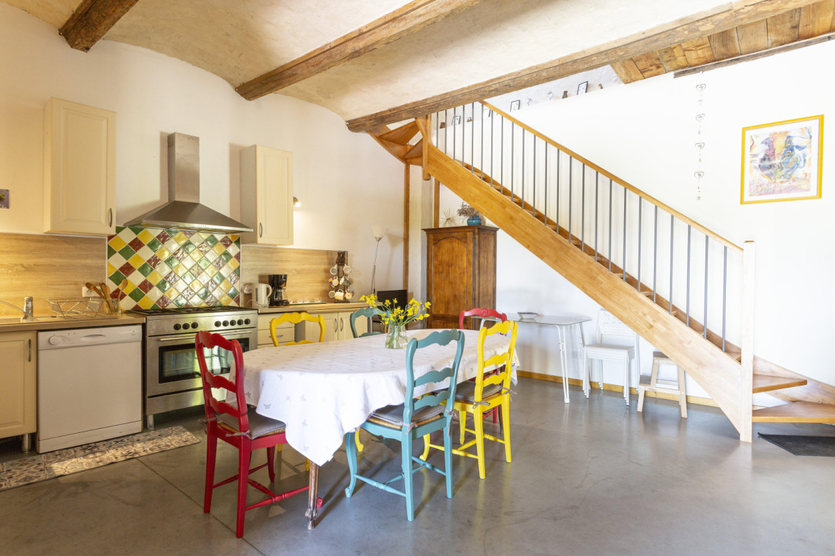 Situé à l’Est de l’Hérault, ce gîte, rénové dans la tradition des Mas Languedociens, vous apportera un véritable dépaysement de par son intérieur avec ses pierres et ses poutres apparentes et ses grands volumes. A l’extérieur, un véritable écrin de verdure vous attend au sein d’un domaine verdoyant. Non loin, découvrez Sommières, ce village pittoresque avec son centre médiéval le long de la rivière du Vidourle ; déambulez dans ses ruelles avec ses arcades, prenez un café à l’ombre des arbres dans un des cafés et restaurants du village, ou découvrez son marché le samedi matin. D’autres communes tels qu’Uzès, Saint-Guilhem le Désert, Anduze, ou encore Aigues-Mortes sont aussi à visiter aux alentours, l’occasion d’une randonnée sur un des nombreux circuits de la région (à Saint-Guilhem, au Pic Saint-Loup, au Cirque de Navacelles…). Nîmes et Montpellier sont également à une demi-heure du gîte. Le gîte est composé de : – Une cuisine/salle à manger bien équipée avec four, micro-ondes, réfrigérateur avec compartiment congélateur, lave-vaisselle, machine à café, bouilloire et le nécessaire de cuisine ; – Un grand séjour de plus de 90m² avec canapés, fauteuils, table, poêle à granules avec éventuellement un lit gigogne mis à disposition ; idéal pour se détendre au coin du feu en famille ou entre amis ; – Une salle d’eau avec douche, vasque avec miroir, WC et machine à laver. A l’étage : – Une première chambre avec un lit double 140×190 cm avec vue sur les champs ; – Une deuxième chambre avec un lit simple 90×190 cm et deux lits superposés 90×190 cm. – Une mezzanine ouverte avec un espace bureau ainsi que des jeux de société et livres à disposition. – Un deuxième espace toilettes avec WC et vasque. Il vous sera possible de vous garer sur une place de parking privative devant le gîte.