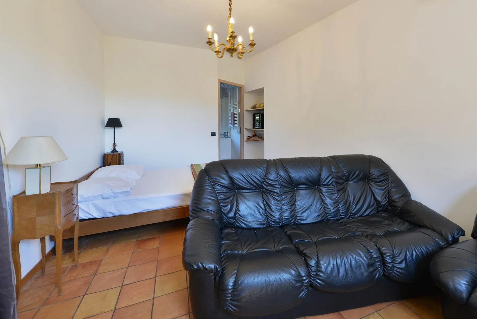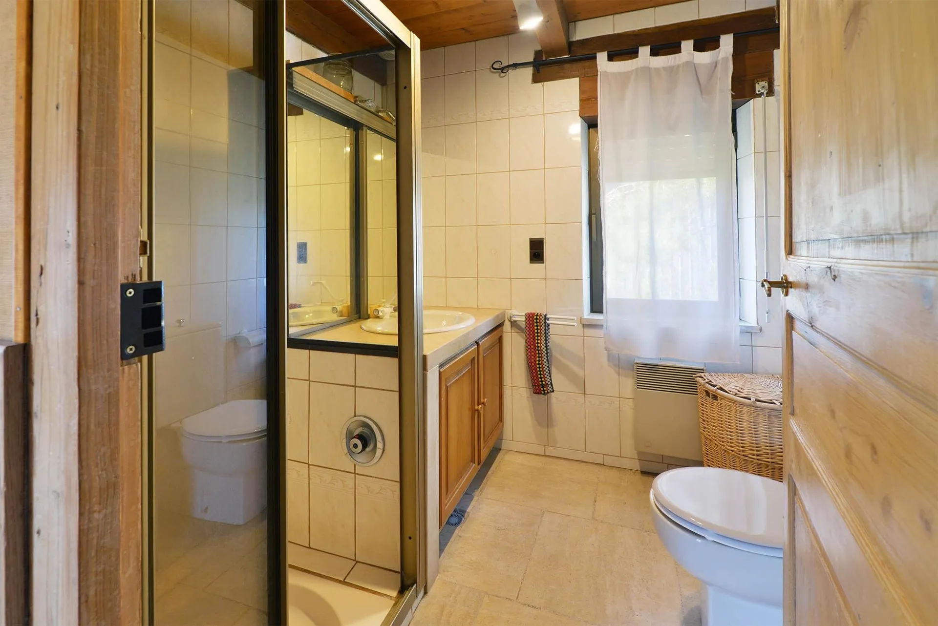 Gîte indépendant, 2 niveaux, à proximité du propriétaire et gîte de grande capacité (à 100 m) dans le hameau, avec 2 chambres (1 lit x 160 et 2 lits x 90, 1 lit d’appoint x 90), 2 salles d’eau avec WC, cuisine (lave-vaisselle), salon (télévision, canapé, wifi), chauffage électrique, climatisation, lave-linge, terrasse close (22 m²), cour privée.