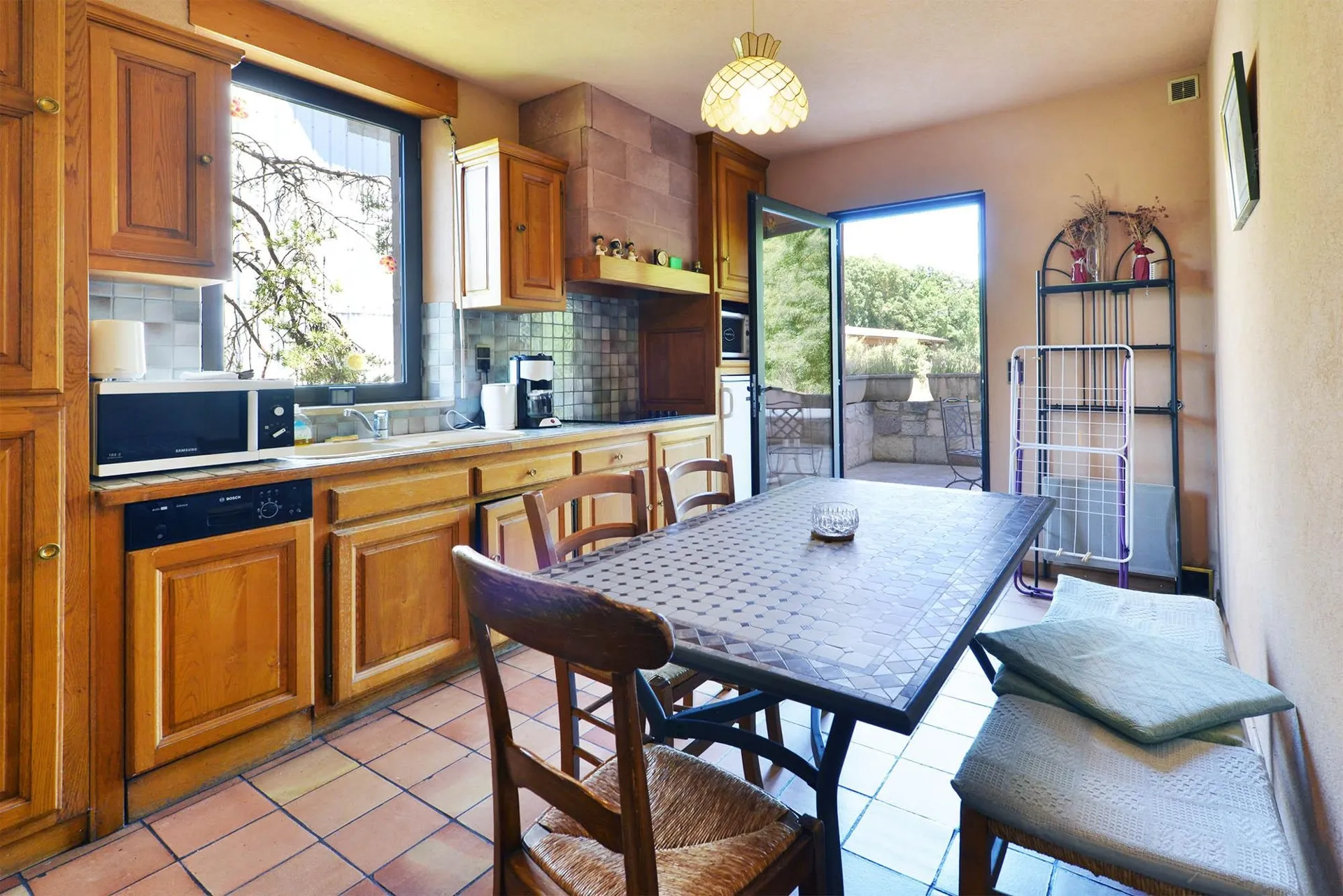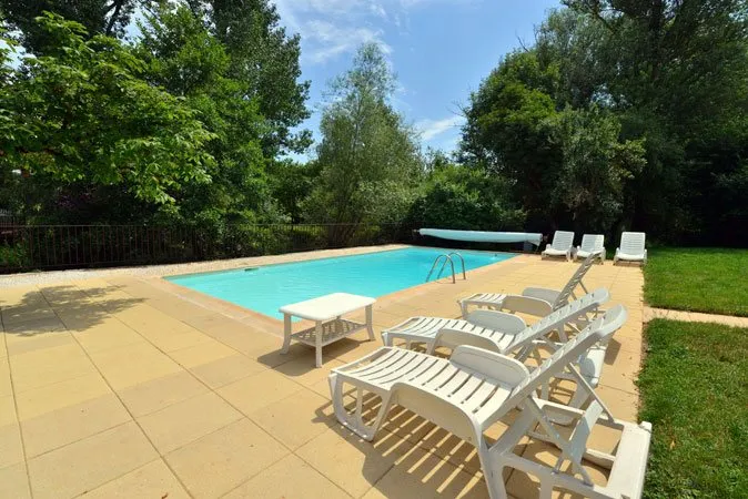 La cuisine bien équipée ouvre sur une terrasse pour prendre les repas. Cour privative et à proximité la cour du moulin « ombre et soleil » où miroite la piscine (commune avec le propriétaire et autres gîtes) est bordée par la rivière Aveyron.