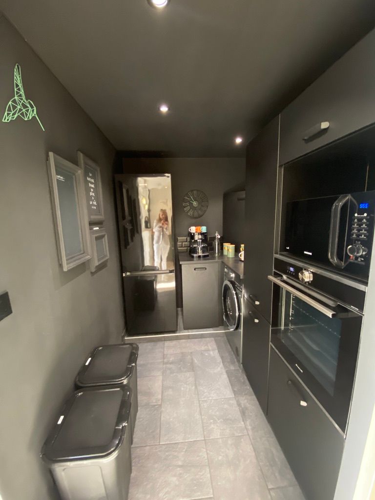 – une pièce à vivre avec salon (canapé, table basse, poêle à bois (fourniture du bois compris dans le prix) fauteuil, table de salle à manger avec 6 chaises), cuisine ouverte toute équipée avec bar et tabourets (lave-vaisselle intégré, plaque à induction, hotte, robots) et sa zone technique (four, micro-ondes, combiné lave-linge, sèche-linge, réfrigérateur, congélateur),
