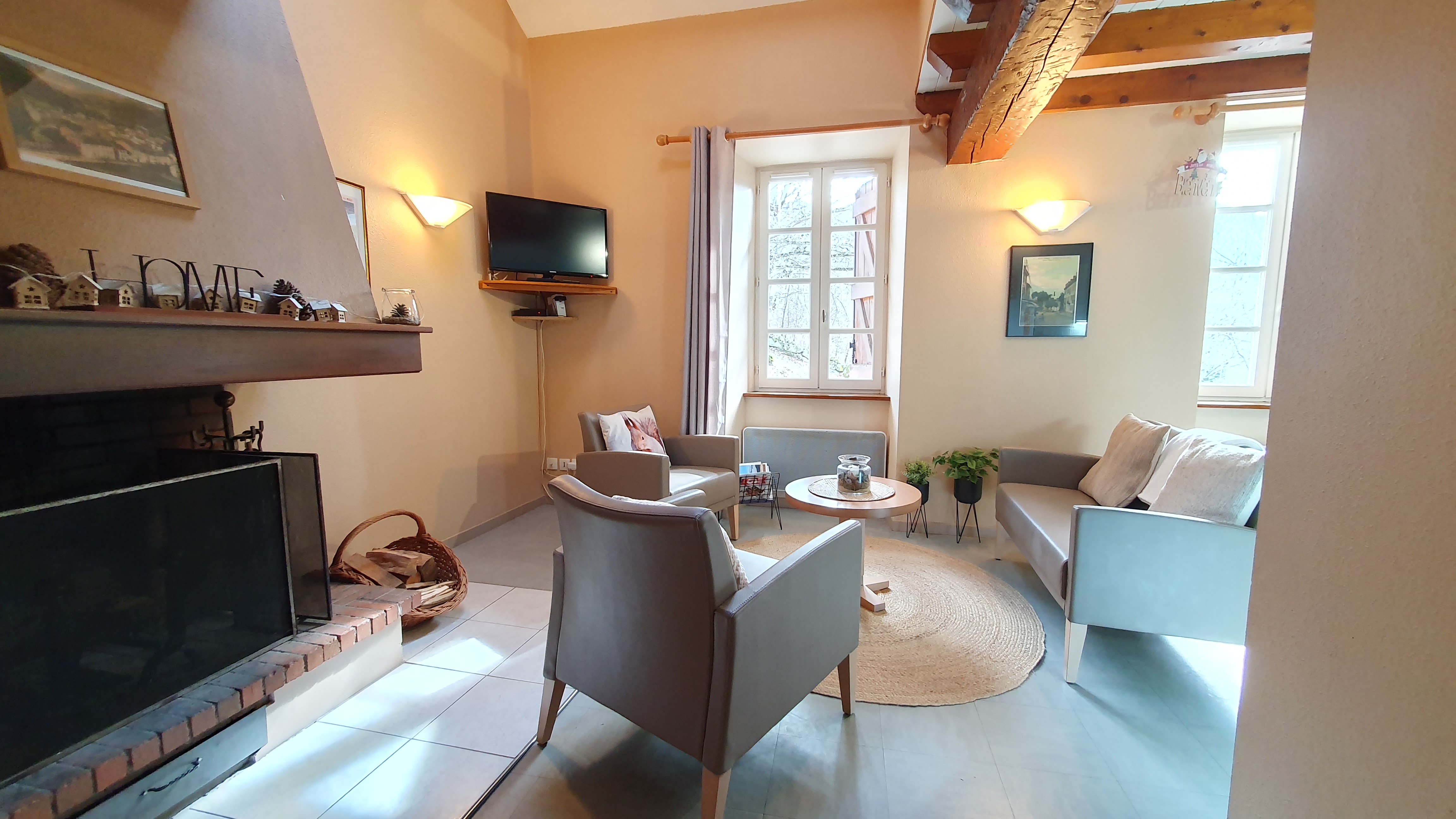 Le gîte, avec ses planchers bois d’époque, sa cheminée à foyer ouvert et ses murs en pierres le classe en gîte authentique de montagne et le rend atypique.