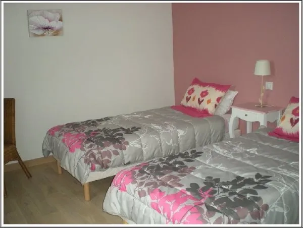 A l’étage : 5 chambres avec parquet dont 4 disposent de lits en 90 x 200, jumelables à la demande, et une dispose d’1 lit superposé. Possibilité de rajouter des lits bébé.