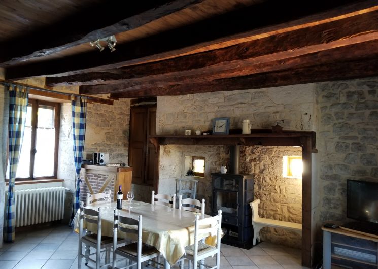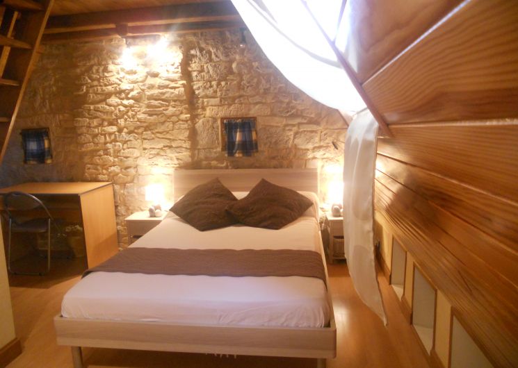 Au RDC, une grande pièce à vivre avec cuisine ouverte toute équipée, un séjour et un salon (lecteur DVD et câble/satellite); salle de bain avec douche,WC indept, une chambre avec lit en 160×200. A l’étage, 2 ch (2 lits en 140) et une petite ch supplémentaire de 6m2 avec un lit en 90 en hauteur; salle d’eau avec wc. Chauffage fuel + poêle à bois. Piscine privée avec bain de soleil et volet électrique.