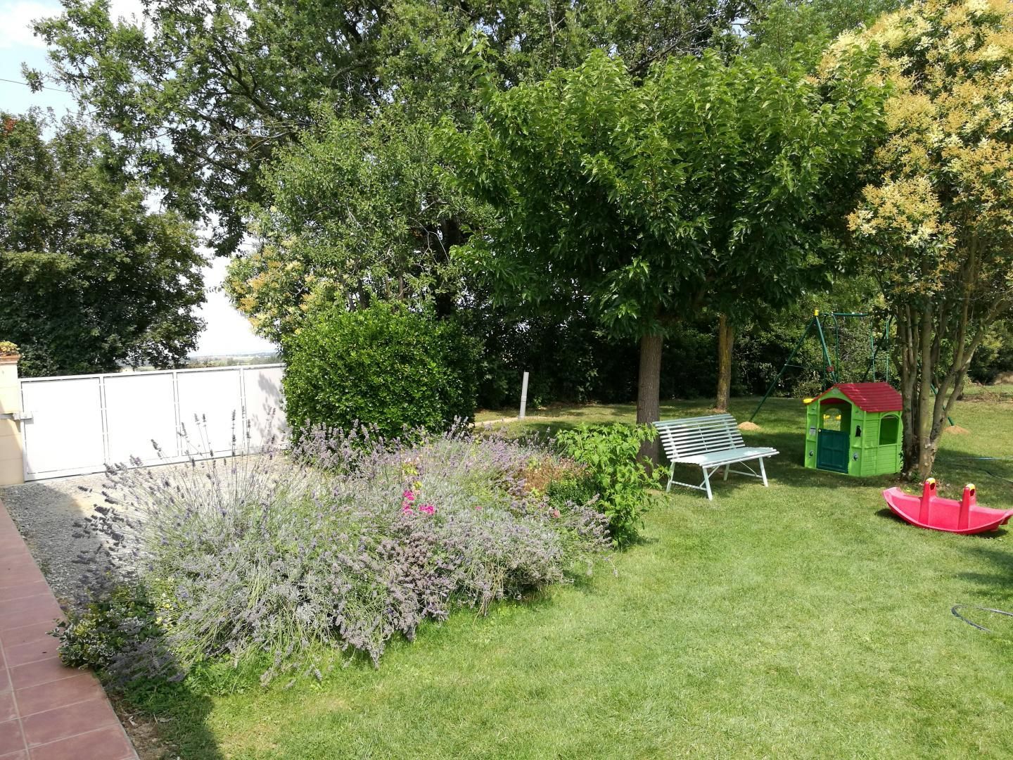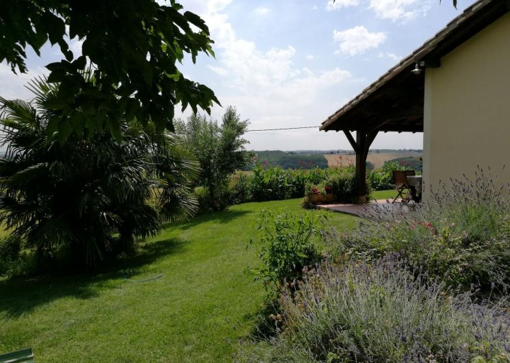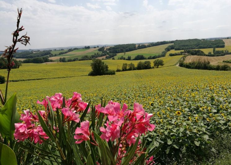 Surplombant les vallons gersois et offrant une vue imprenable sur la chaîne des Pyrénées, cette maison traditionnelle de 100m2 est indépendante et de plain-pied sur un terrain arboré et fleuri de 950m2.