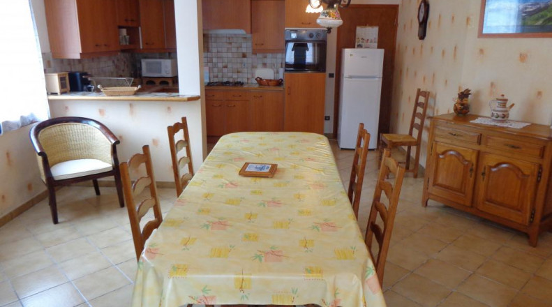 Maison indépendante de plain-pied de 65 m² comprenant : Un coin cuisine ouvert sur un salon/salle à manger, 2 chambres (2 lits en 140 et 1 lit en 90), une salle d’eau (douche) et WC indépendant. La location bénéficie d’une terrasse.
