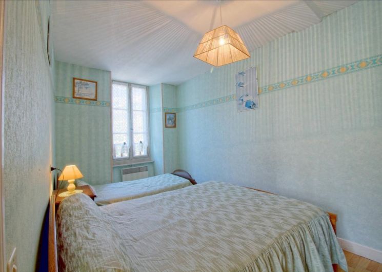 Appartement de 42 m² comprenant : Un coin cuisine, une salle à manger, avec canapé, 2 chambres (2 lits en 140 et 1 lit en 90), une salle d’eau (douche) avec WC. La location bénéficie d’un parking privé, d’un jardin avec salon de jardin et local à vélos.