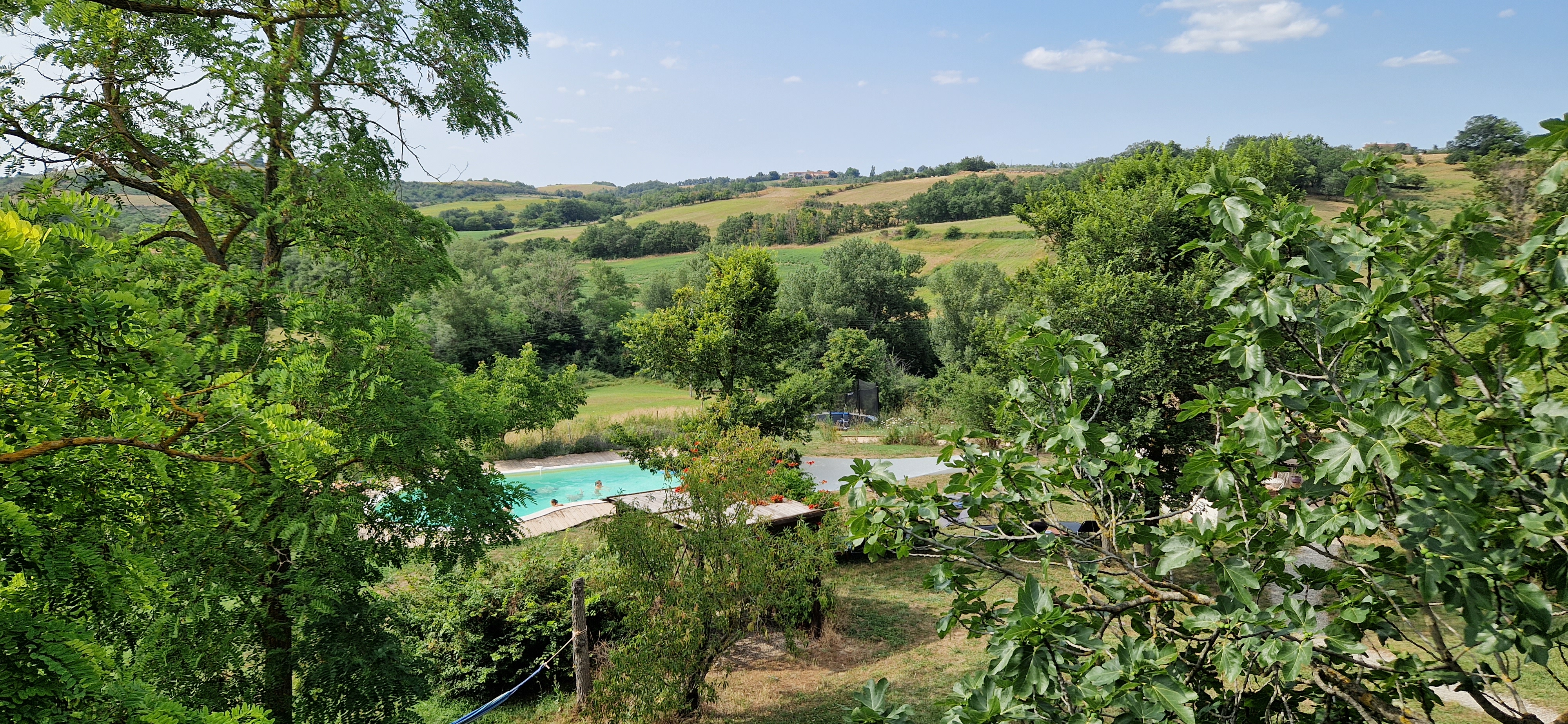 Bienvenue dans notre gîte Figuier, une maison de vacances spacieuse et confortable sur notre magnifique domaine de 13 hectares avec piscine, entouré de collines verdoyantes et offrant une vue splendide sur le parc des bisons.
