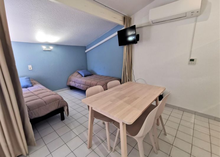 Bienvenue au village de gîtes l’Affenage, où vous trouverez sur place 12 hébergements (dont 2 PMR). Le gîte est composé d’un coin cuisine équipé, séjour avec canapé convertible, coin nuit avec 2 lits en 90, et d’une salle d’eau avec douche et WC, TV, WIFI, climatisation. Vous pourrez profiter de l’espace extérieur avec terrasse privative, patio commun et parc clôturé et arboré de 2 hectares. Possibilité de location salle polyvalente, services équipements en supplément. ATTRAITS TOURISTIQUES : St-Guilhem-le-Désert, Clermont-l’Hérault, grottes de Clamouse, Lac du Salagou, Villeneuvette (ancienne manufacture royale), le Cirque de Mourèze, Saint-Jean-De-Fos (village de potiers).