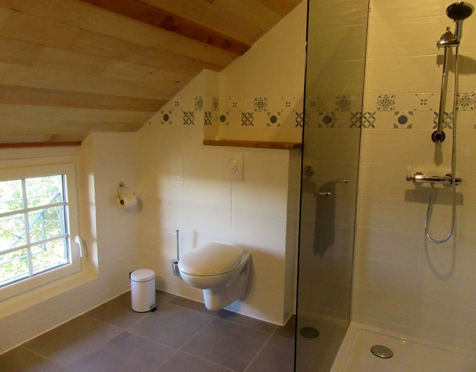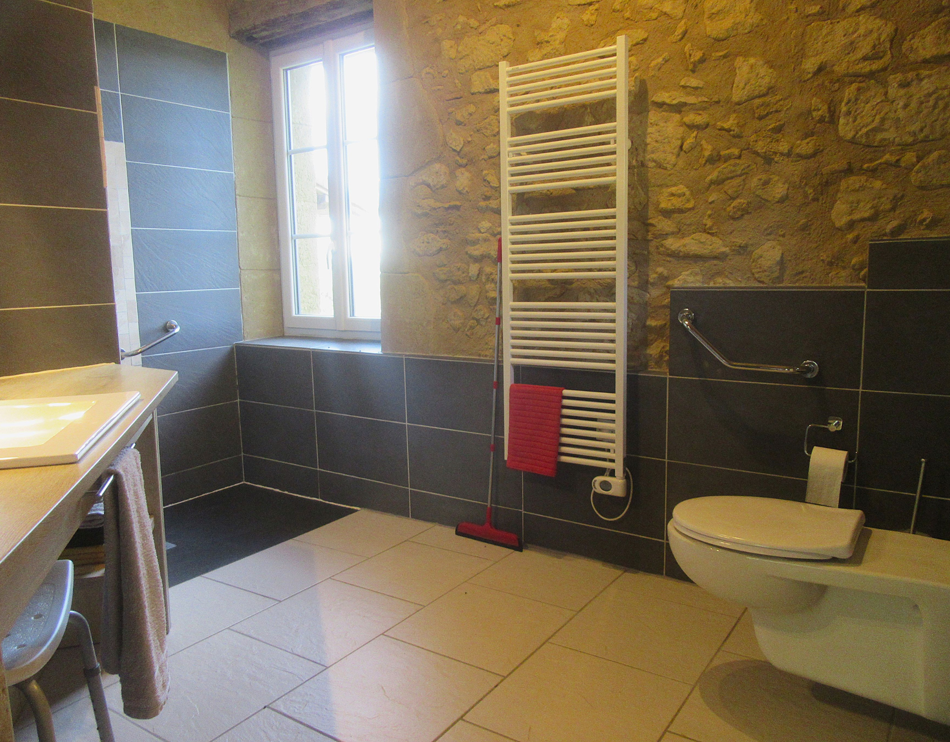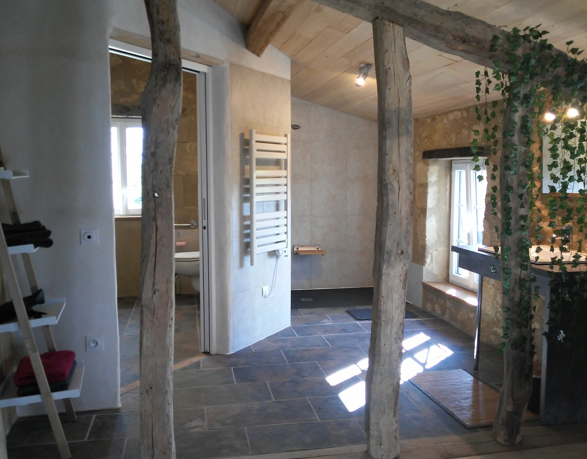 Dans un petit village pittoresque, nous vous accueillons dans le gîte « La Bascule » Vous entrez par la grande porte équipée d’une rampe et vous arrivez directement dans une cuisine très spacieuse, entièrement équipée ( lave-vaisselle, cuisinière, four, réfrigérateur / congélateur) donnant sur la grande terrasse avec vue sur la vallée.A droite grande pièce à vivre avec une grande table en bois massif et grands dégagements, coin salon avec canapé devant l’insert de la cheminée.Côté jardin, une première chambre avec un lit 140cm et une salle d’eau avec douche à l’italienne, le WC séparé.Le couloir à gauche de la cheminée mène à la buanderie avec lave-linge et sèche-linge. Le couloir à droite de la cheminée mène dans la deuxième chambre en rez-de-chaussée équipée de salle d’eau, douche à l’italienne et WC. 2 lits de 90cm peuvent être jumelés. Le rdc est accessible pour des personnes en mobilité réduite.A l’étage se trouve une troisième chambre avec un lit 140cm et une salle d’eau avec douche à l’italienne et WC. Au palier il y a encore un canapé convertible.