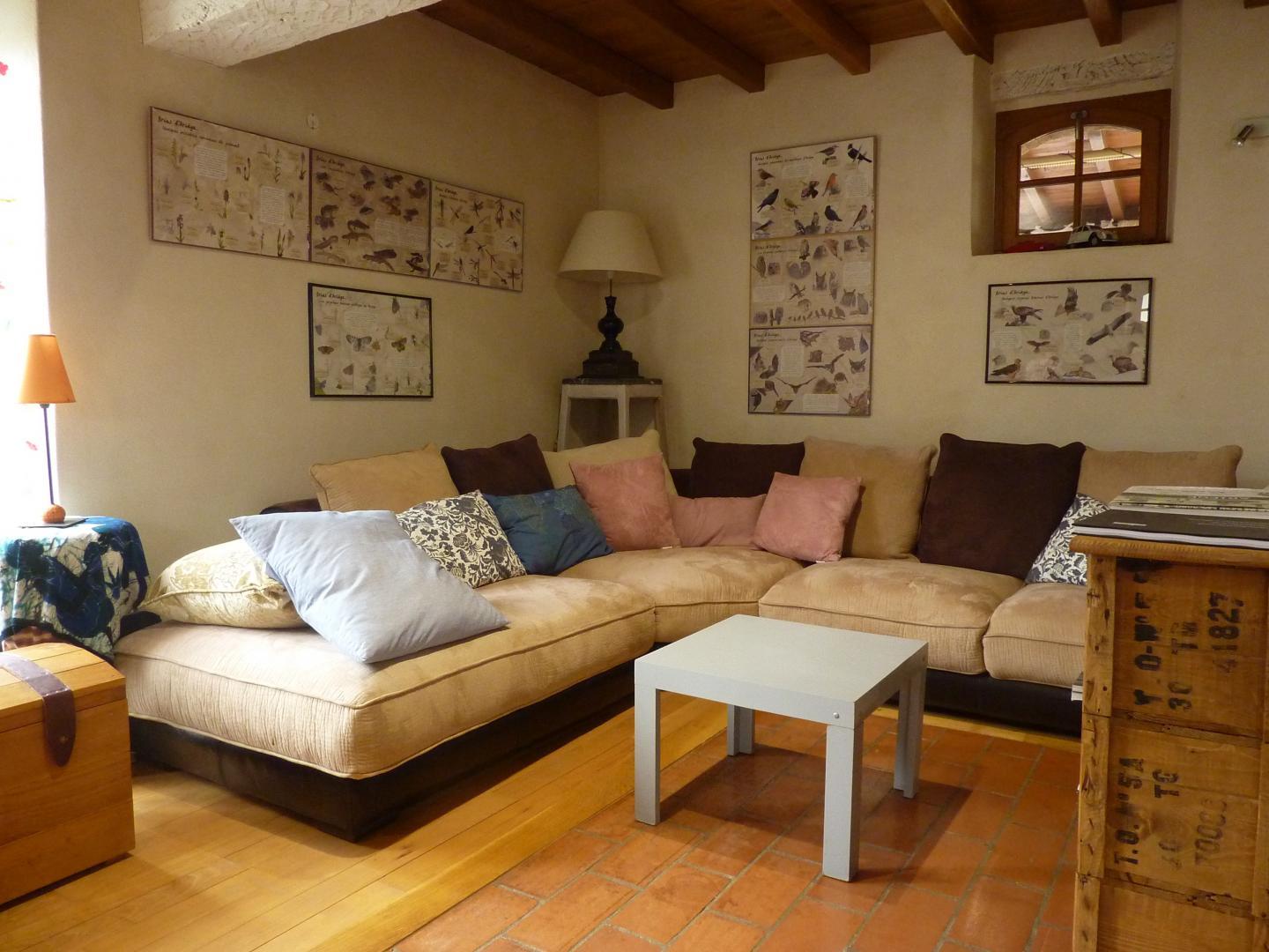 Maison spacieuse et chaleureuse au cœur des champs changeants, parfaite pour se ressourcer. Les pièces de vie offrent confort et convivialité, avec une salle de jeux équipée d’un babyfoot pour les soirées. Le salon, ouvert sur la cour privative et le paysage pyrénéen, invite à la détente, que ce soit près de la cheminée ou dans les canapés moelleux. À l’étage, un coin bibliothèque et tisanerie ajoute une touche de sérénité. La piscine chauffée, commune et accessible de juin à septembre, complète l’expérience.