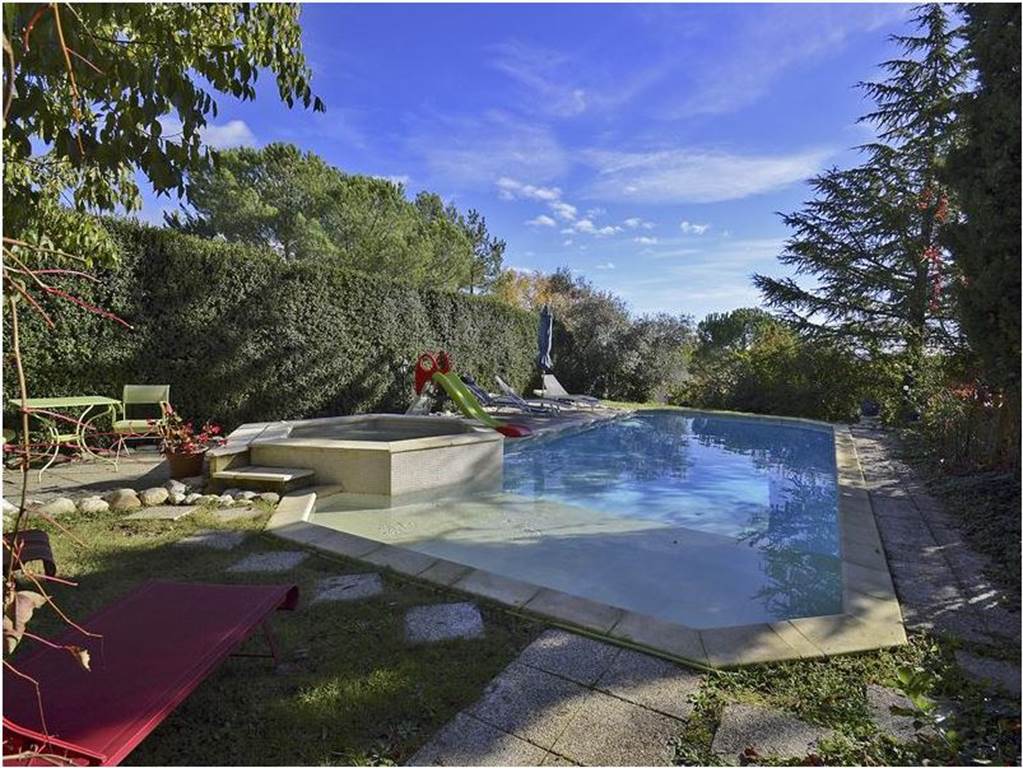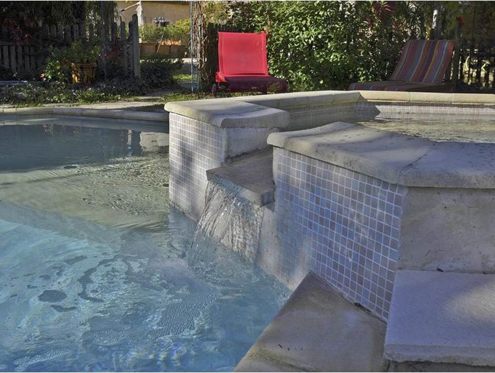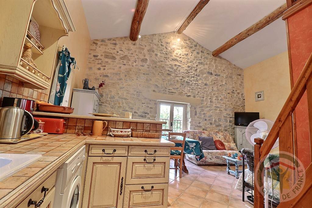 Séjour-cuisine, 2 chambres, mezzanine, salle de bain, 1 wc, cour, parking, piscine privée commune (12m x 5m), spa. Couchages : 2 lits en 140 + 2 lits 1 pers.