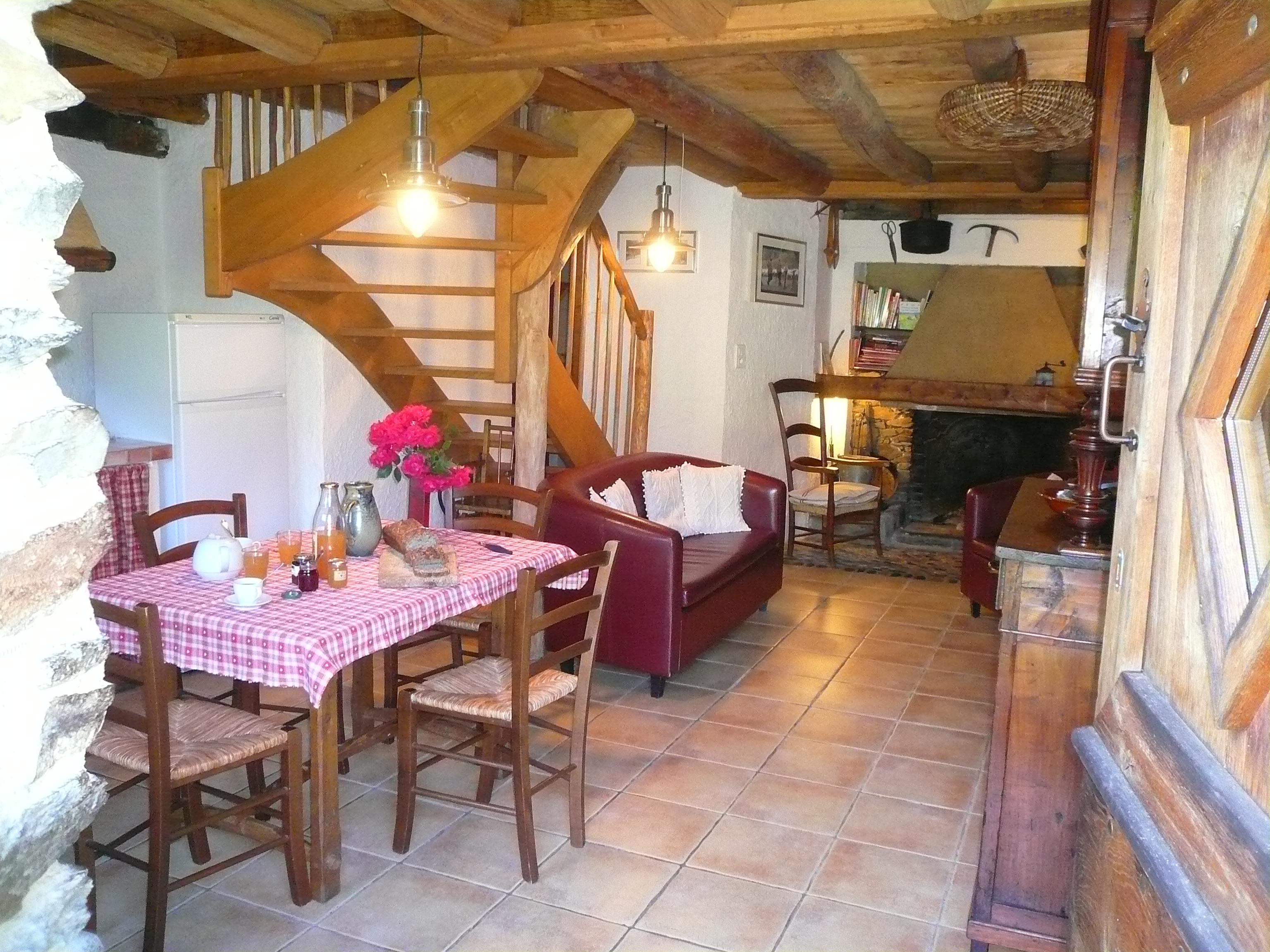 La grange de Claude est un hébergement de caractère, pour 4 personnes, située en montagne, sur le GR10. Le parking se situe en contre-bas du gite et l’accès se fait à pieds par un chemin en moins de 2 minutes. Le gite se compose d’une pièce principale avec coin cuisine, salon canapé avec poêle dans la cheminée, salle de bain et toilettes. A l’étage, 2 chambres, et un jardinet privatif à l’arrière.