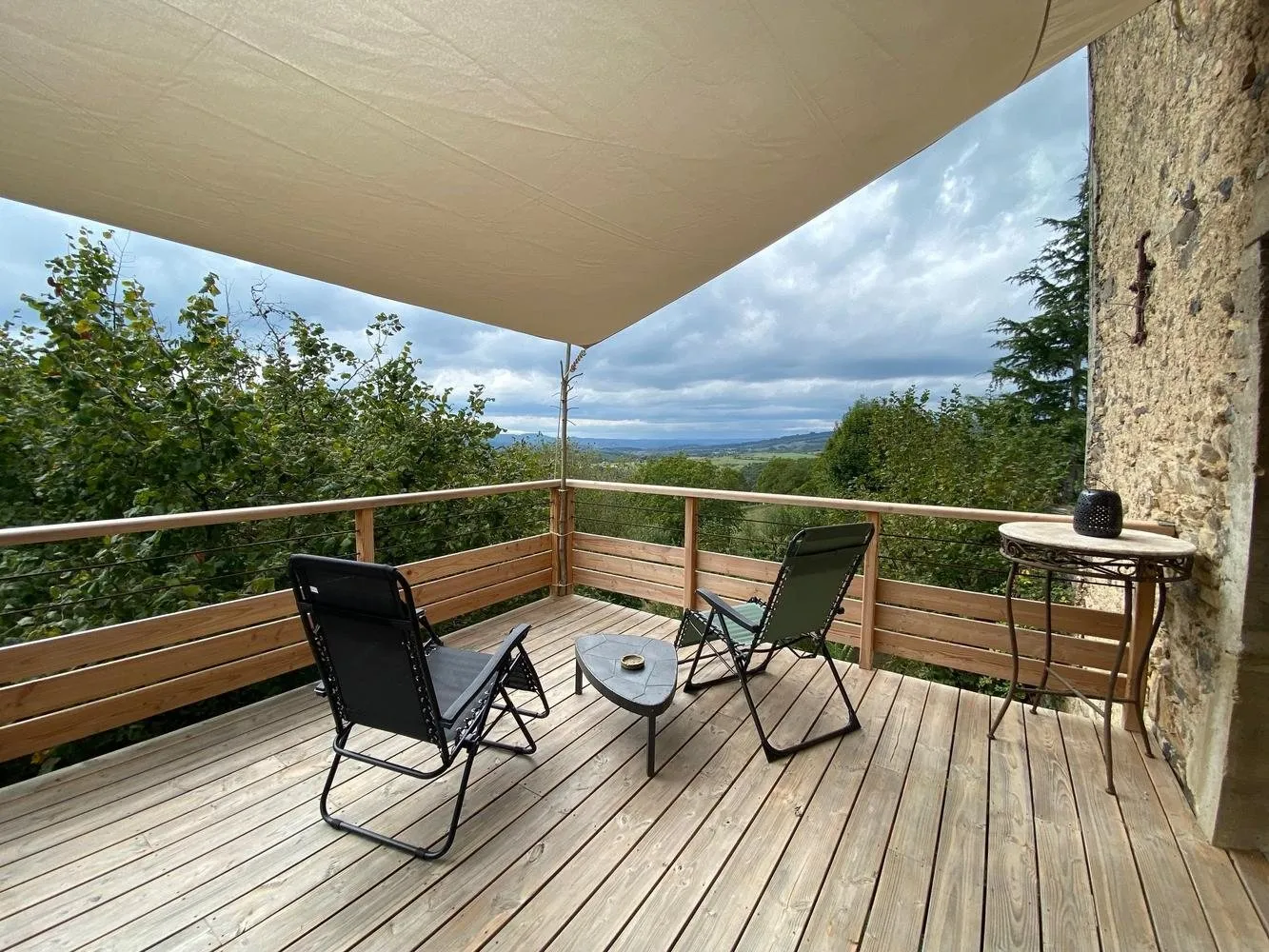 Terrasse : terrasse sud de 28 m2 sur pilotis avec vue magnifique, et terrasse nord pour être au frais l’été