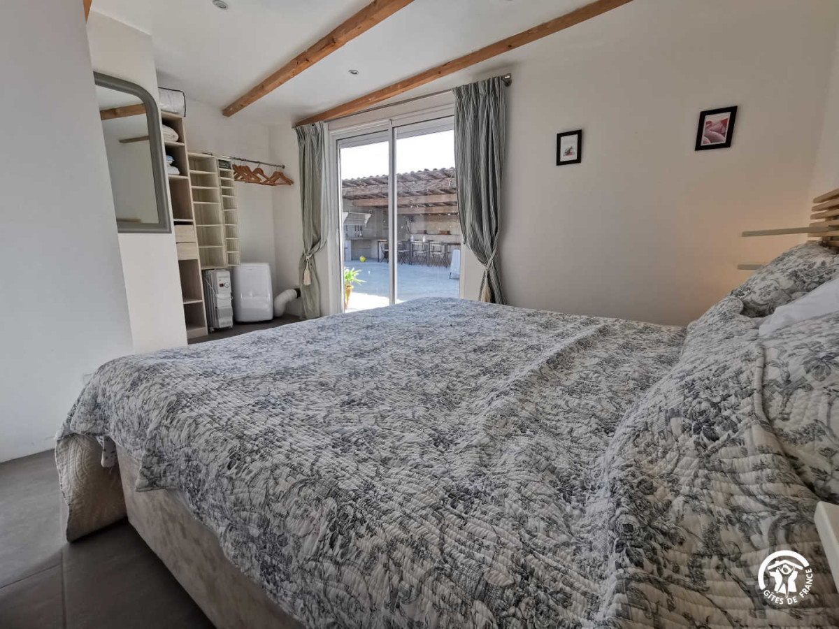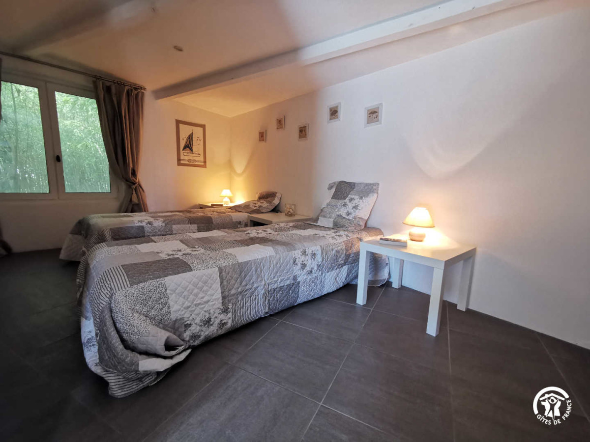 À proximité de la maison des propriétaires, mais sans vis-à-vis, dans un ensemble de 400 m², vous profiterez en famille ou entre amis des prestations de ce gîte clôturé avec portail et climatisé. L’entrée se fait par une grande baie vitrée donnant accès à la pièce de vie lumineuse comprenant cuisine tout équipée (four, micro-ondes, réfrigérateur, congélateur individuel, cafetière à filtres et Senseo, bouilloire) et salon. Un couloir avec un espace buanderie, mène aux deux chambres ainsi qu’une salle de bain/WC. La première chambre est équipée d’un lit double en 160 et la seconde de deux lits simples. A l’extérieur, sur la terrasse privative couverte, vous trouverez tout le nécessaire pour les beaux jours : plancha, salon de jardin, bains de soleil et jacuzzi (idéal pour 2 adultes et 2 enfants). Un parking privatif et sécurisé est mis à disposition sur le côté du gîte. Draps et serviettes inclus. Equipements bébé à la demande. Caution ménage de 60€ à donner par chèque aux propriétaires à l’arrivée. ATTRAITS TOURISTIQUES : Entre mer (Cap d’Agde, Valras-Plage, Vias plage, Grau d’Agde …), montagne (St Pons de Thomières, La Salvetat s/ Agout, lac du Salagou, lac de l’Araviège….). et villes (Béziers, Pézenas, Agde, Sète, Narbonne, Montpellier, Lodève, ST Guilhem le Désert……).