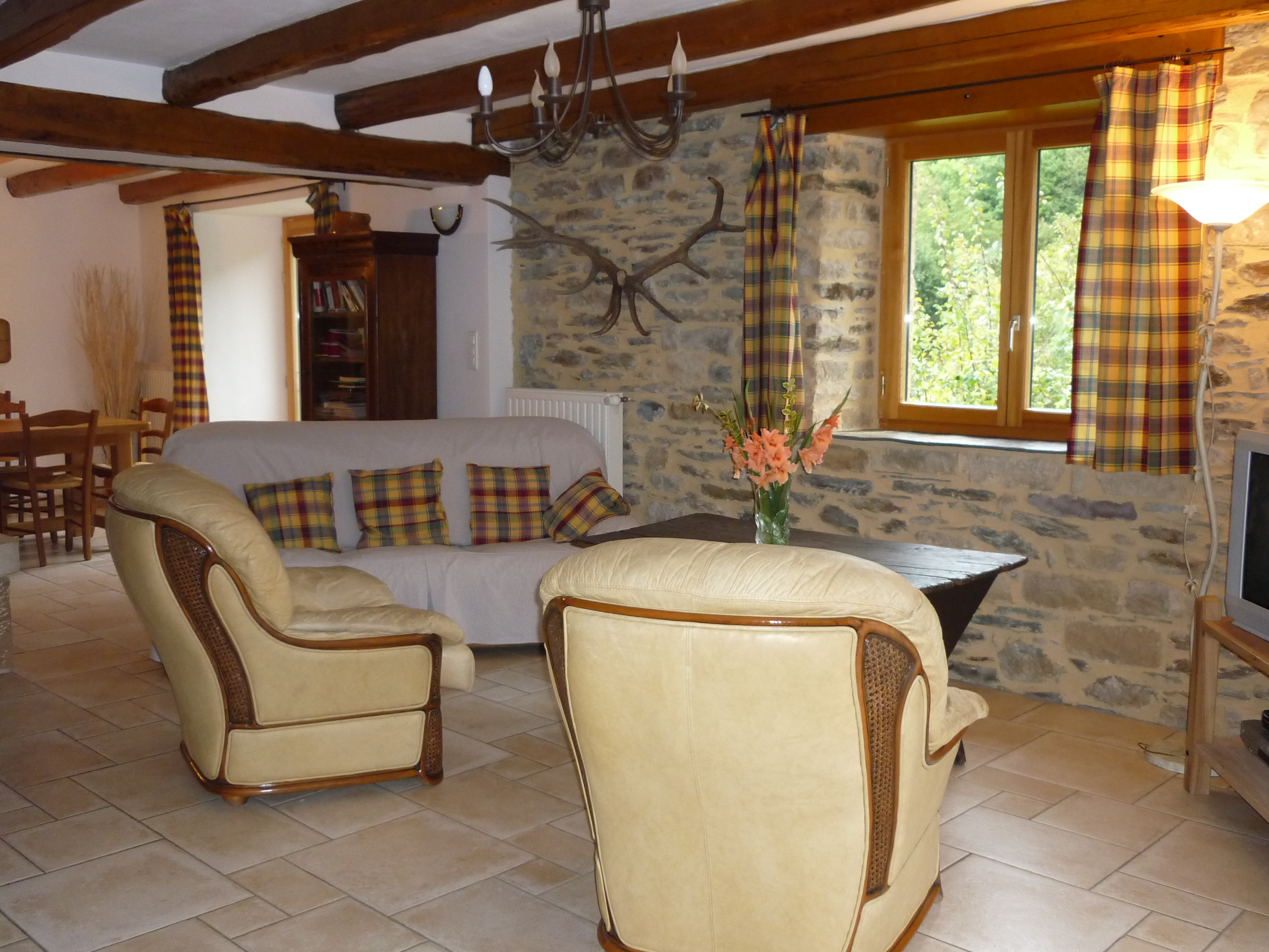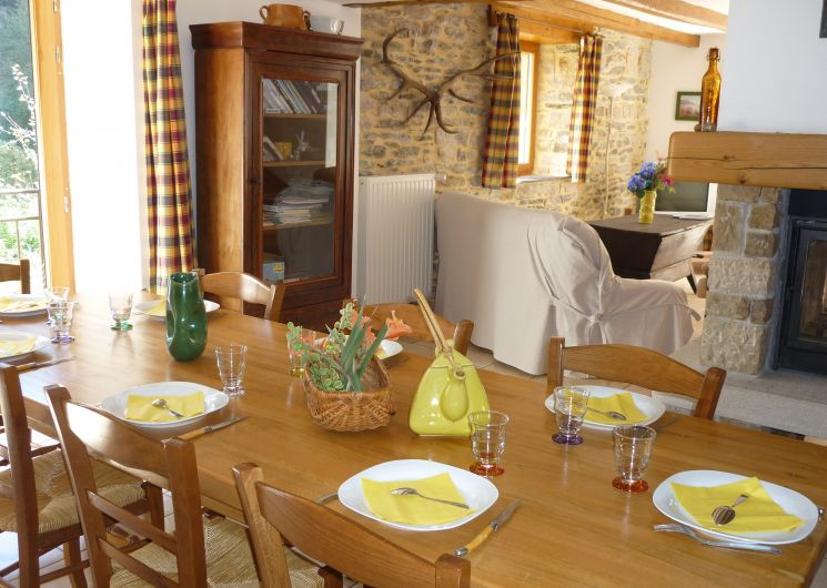 Maison de village spacieuse tout confort, dans un très joli petit village cévenol chargé d’histoire. Au rez-de-chaussée : grand séjour/salon (connexion internet, télévision, magnétoscope, lecteur DVD, cheminée insert), cuisine intégrée (lave-vaisselle, micro-ondes), cellier ( lave-linge), WC. A l’étage : salle de bains, WC indépendants, 1 chambre (1 lit 2 places en 160), 1 chambre (1 lit 2 places et 1 lit 1 place, dressing et salle d’eau privés), 1 chambre (1 lit 2 places et 1 lit 1 place en mezzanine). Chauffage central. Terrasse fermée avec salon de jardin et barbecue, cour, table de ping-pong et parking privés, abri voitures couvert privatif. Animaux acceptés gratuitement. Épicerie à 5km. Pain à 5km.
